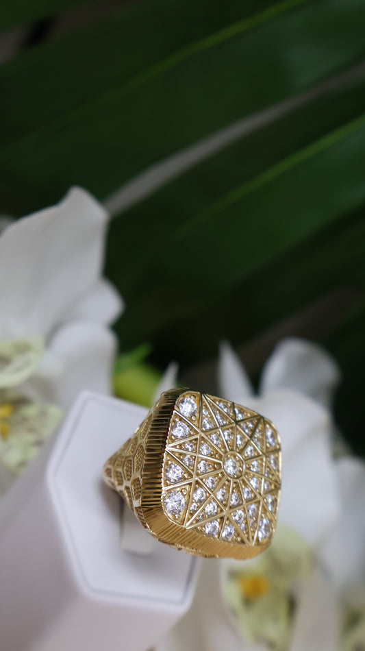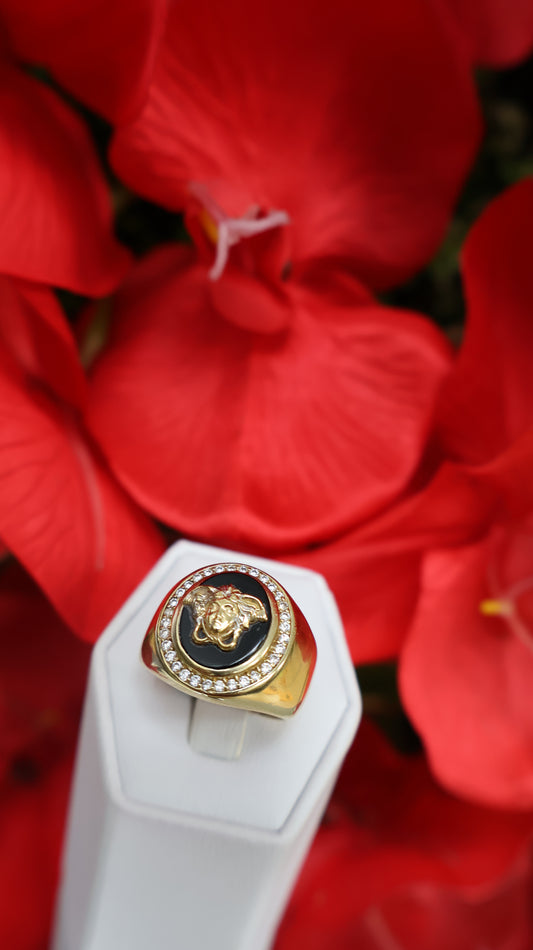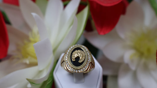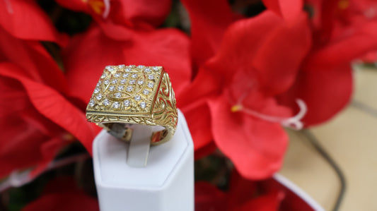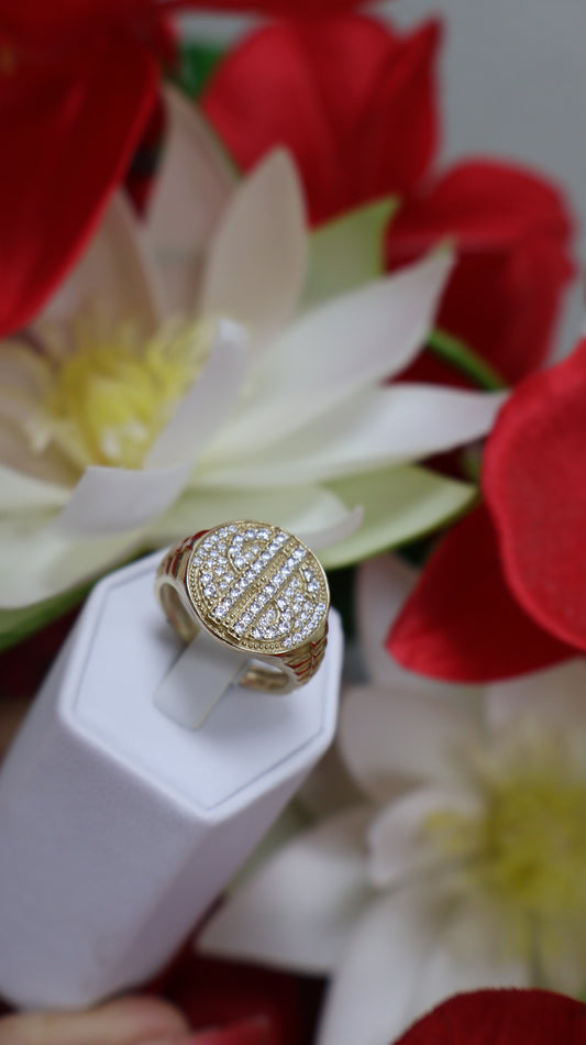 anillo de 10k de hombre con el signo de $ y con sirconia
