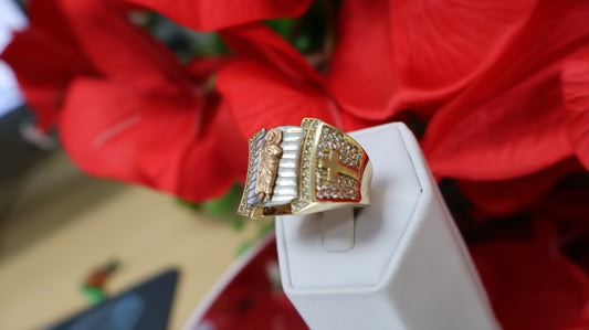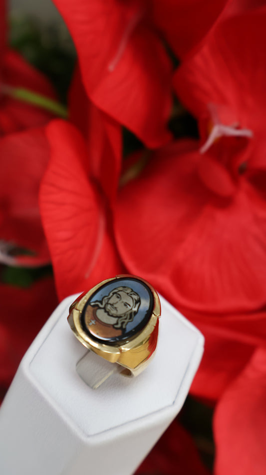 anillo 10k de hombre con una piedra con la cara de cristo en tornazor .