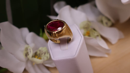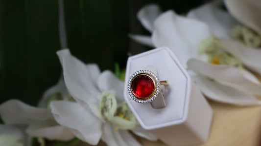 Anillo de mujer en oro 14k de piedra en roja y con sirconia en blanca