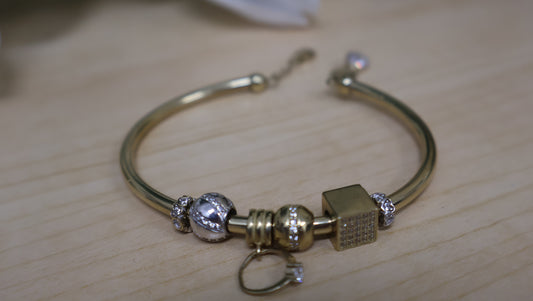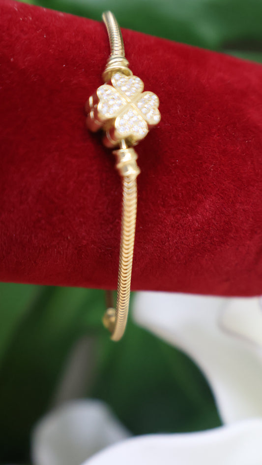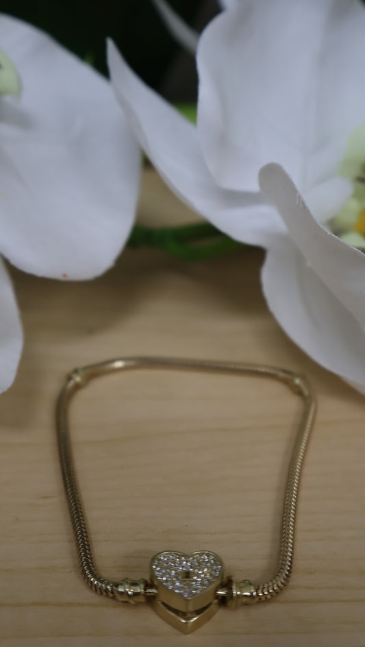 Manilla pandora de mujer en oro 10k con tranque de corazon con sirconia.