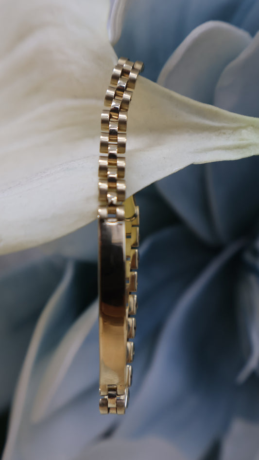 Manilla de mujer en oro 10k con placa para grabar lo que desees .