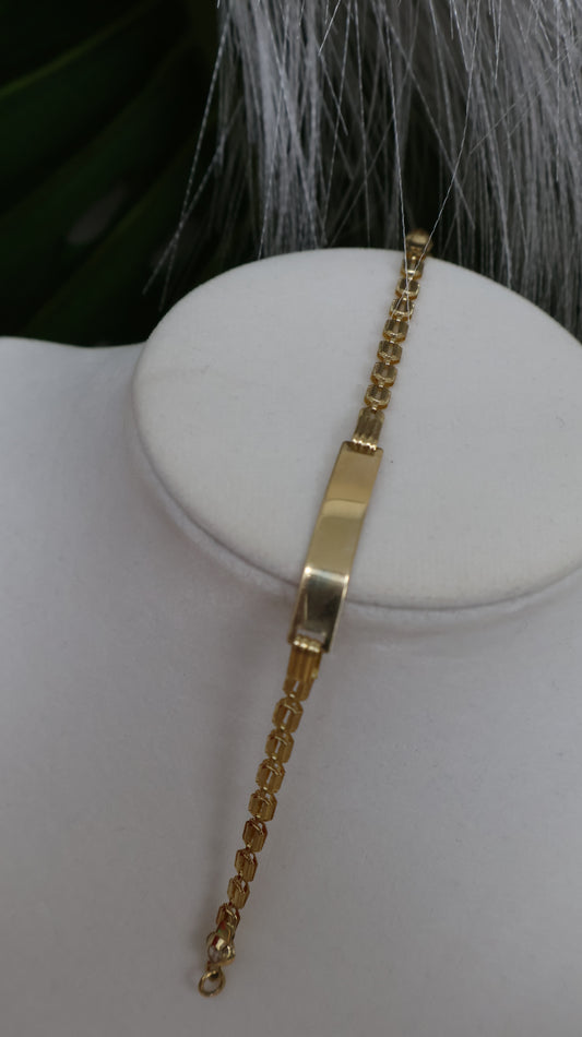 Manilla para ninos en oro de 10k con placa se le pone diseno a la placa sin costo