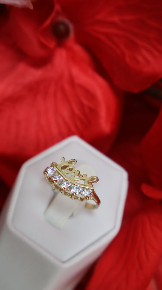 Anillo de mujer en oro 10k con sirconia y dice LOVE