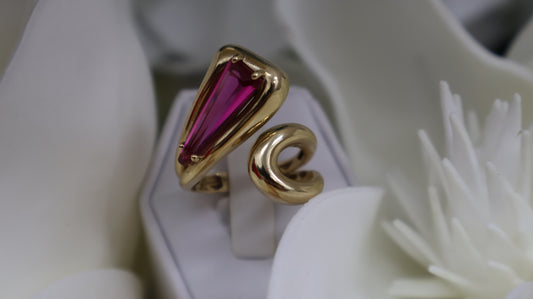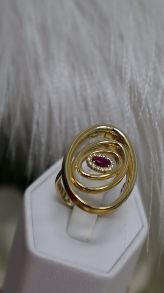 anillo de mujer con pidra roja en el centro en oro 14k