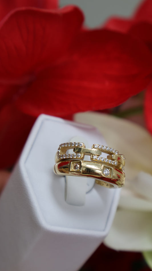 anillo de mujer 14k estilo eslabon con sirconia blanca