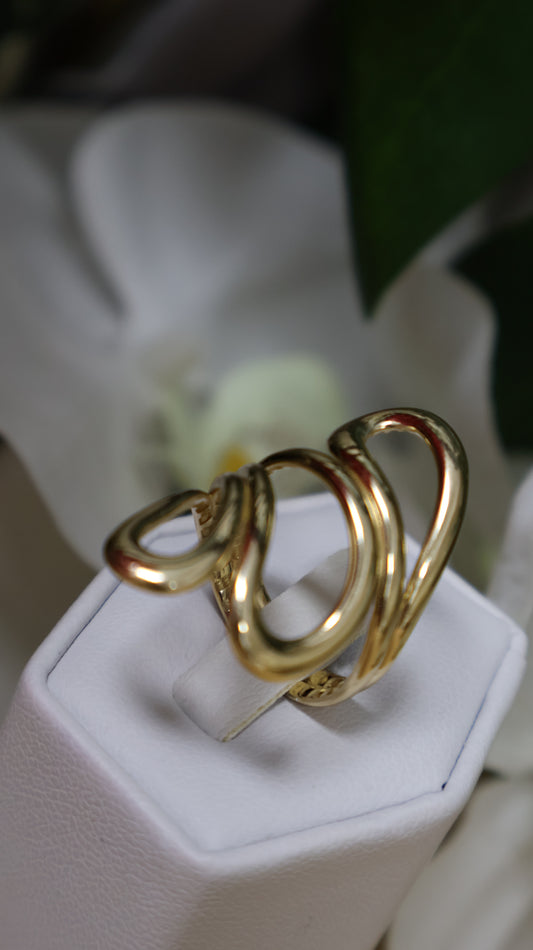 anillo de mujer 14k con tres terminado en oja
