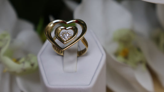 anillo de mujer 14k con piedra blanca de corazon