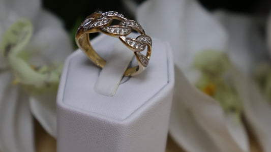 anillo de mujer 14k enlazado con circonia blancas