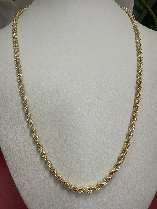 Cadena de cordon o torzal de oro 10k para mujer y hombre de 24 de largo .