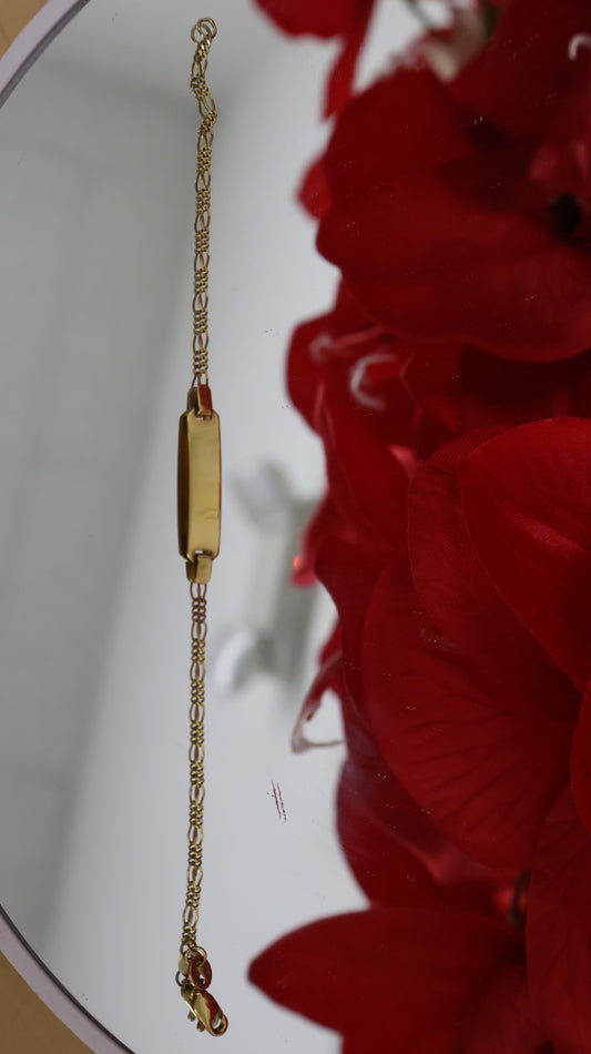 manilla de oro 10k para ninos con placa