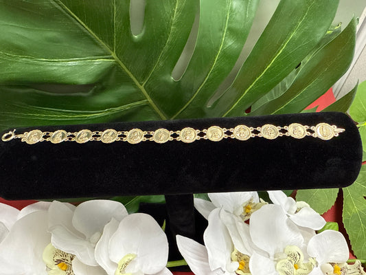 Manilla de mujer cristiana con diferente santos de oro 10k