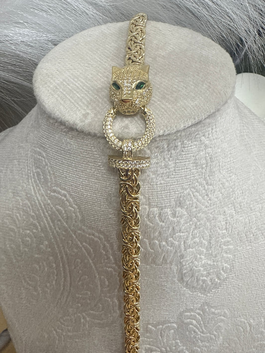 Manilla de mujer de oro 10k con circonia en verde y blanca elegante para cualquier ocacion
