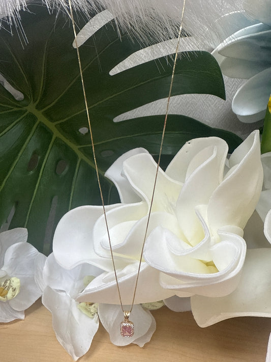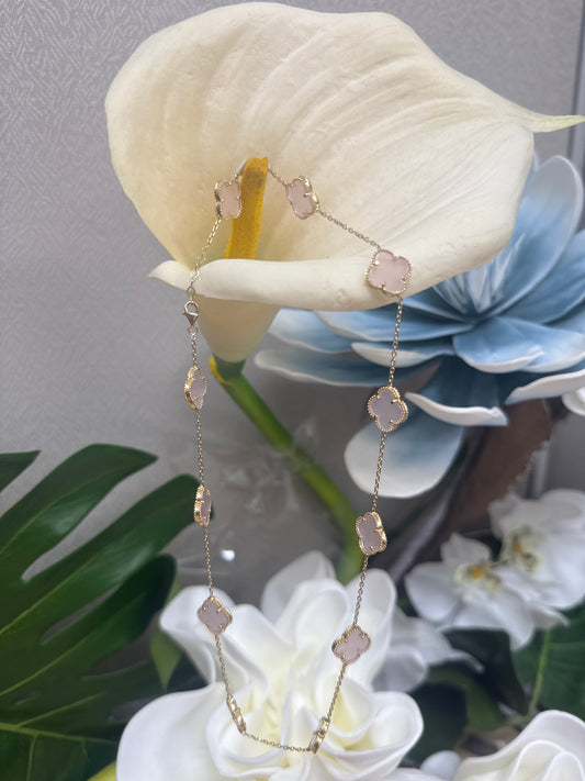 conjunto de arete ,anillo y cadena de mujer de clover en rosada