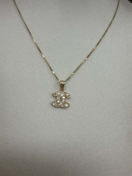 Conjunto de cadena , dije y arete de CC en oro de 10k para mujer