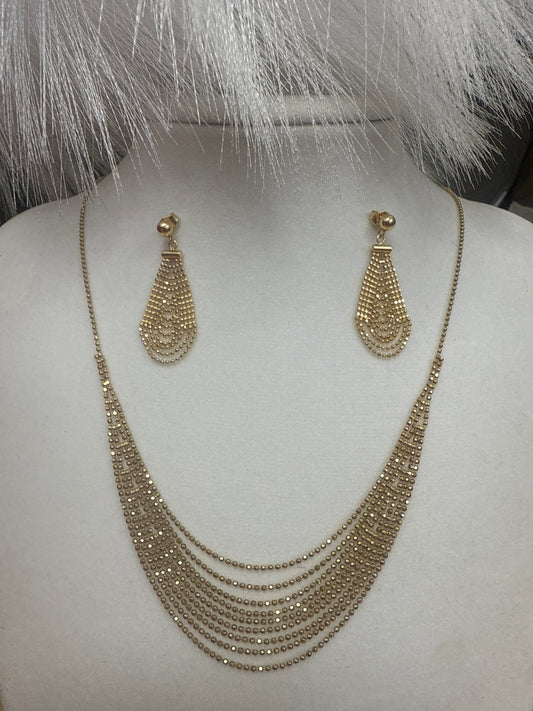 Conjunto de arete , cadena y dije de gotas en oro 10k para mujer