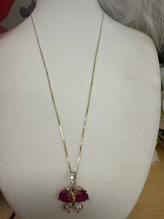 Disfruta de bello conjunto de cadena arete y dije con circonia en rojo para mujer de 14k