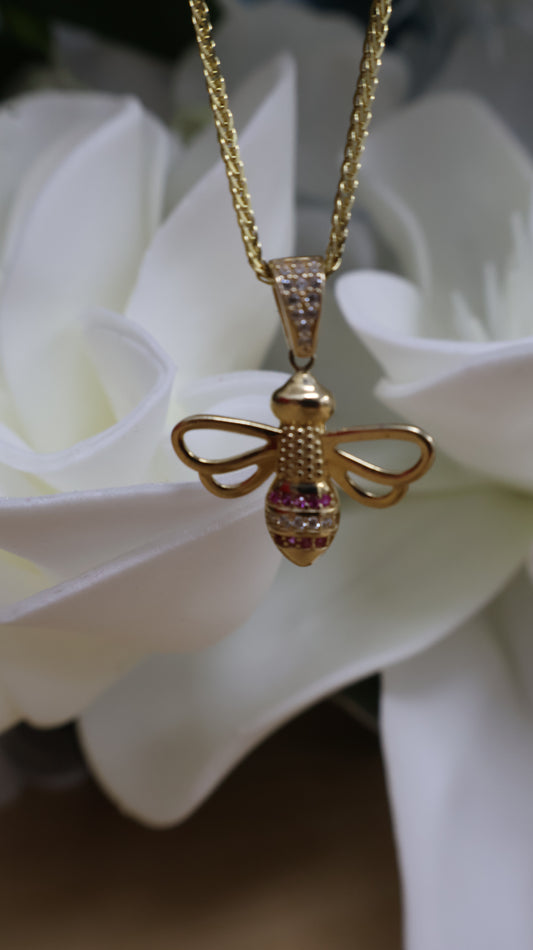Dije de 14k de abispa con circonia roja y blanca