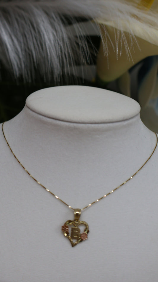 Dije de letra de corazon con 2 flor de oro 10k para mujer y para ninos