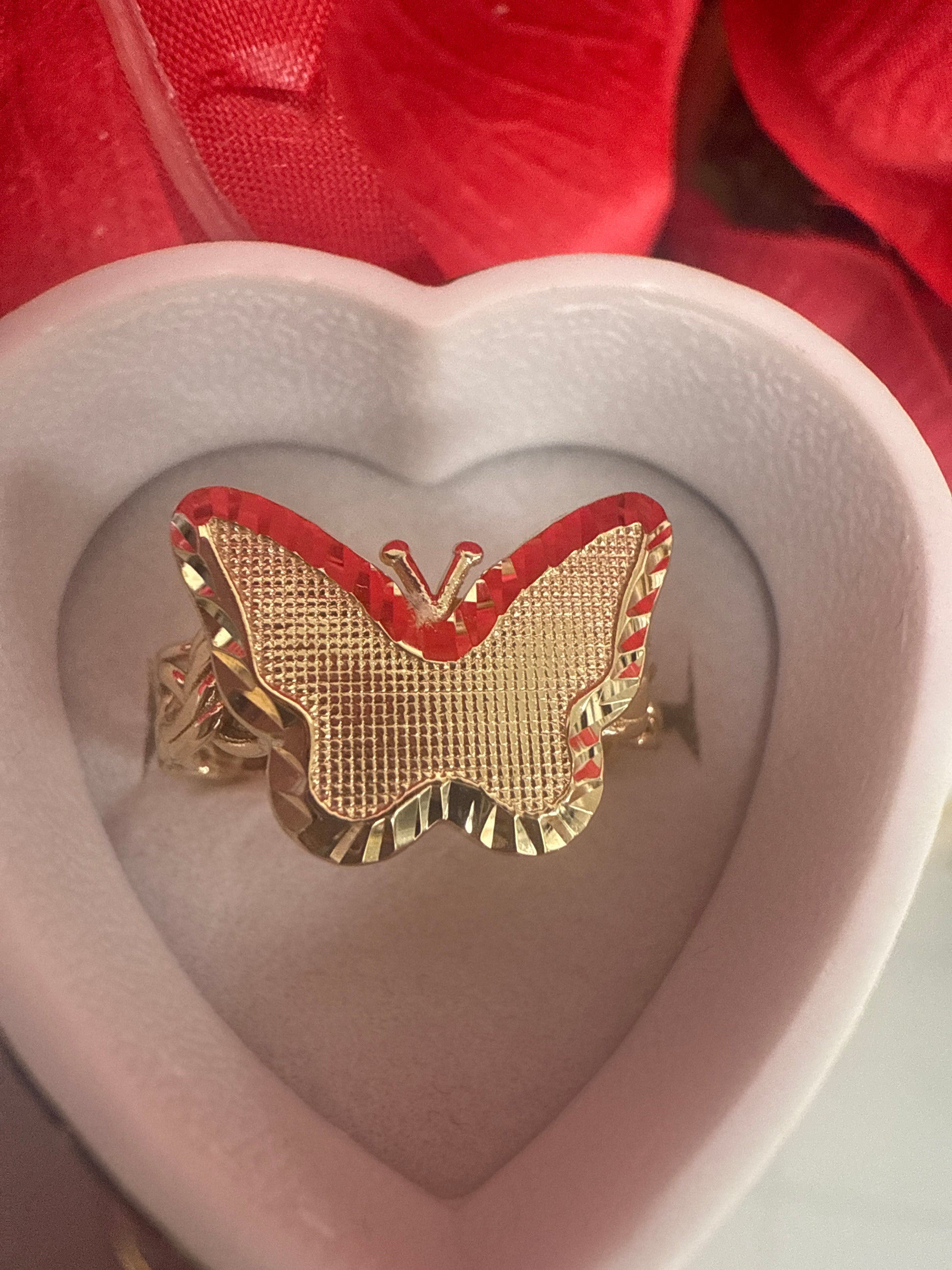 Anillo de mujer de oro 10k de mariposa con eslabones .