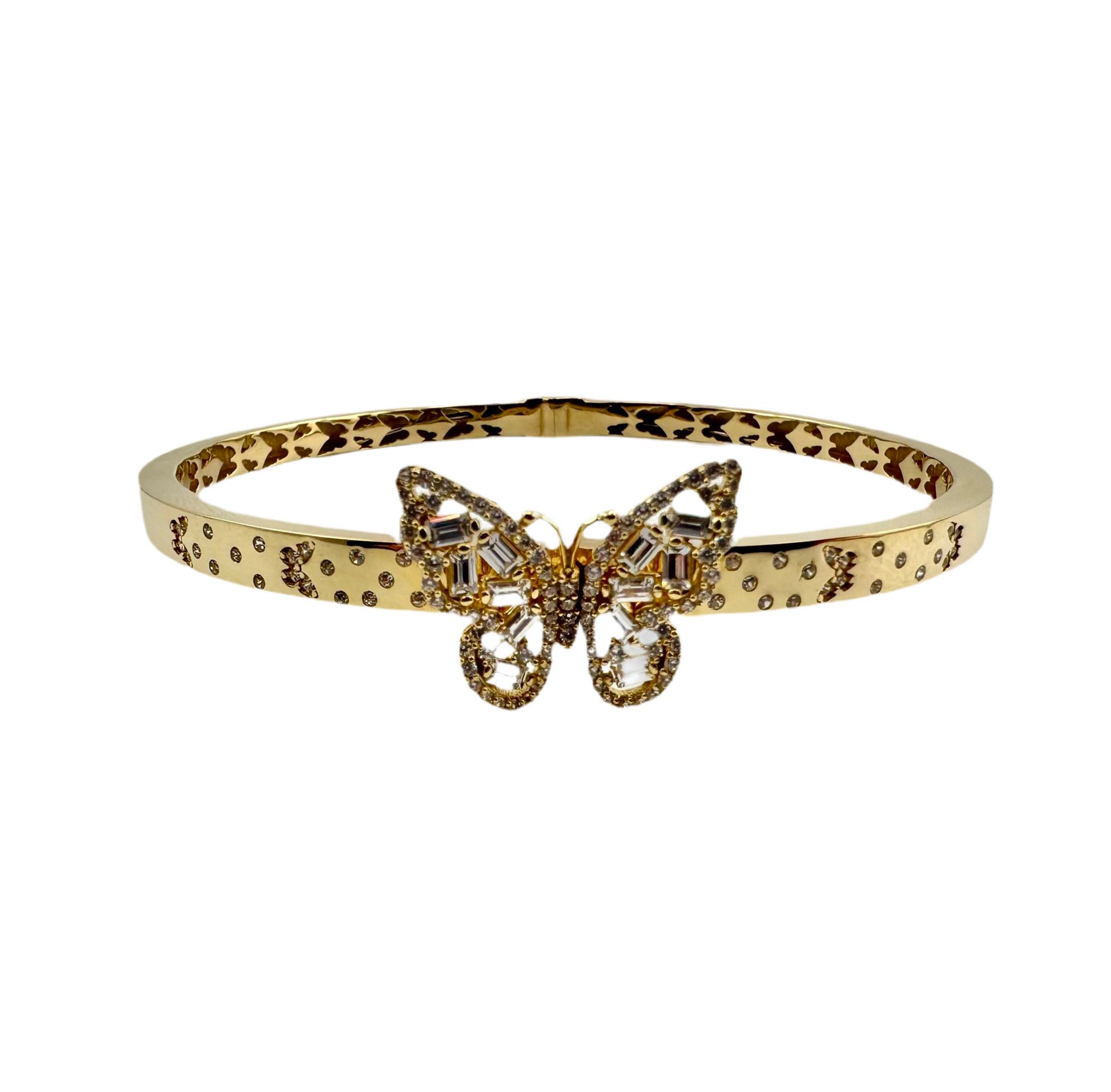 Hecho con oro de alta calidad y adornado con un diseño de mariposa, este brazalete es el accesorio perfecto para cualquier ocasión.