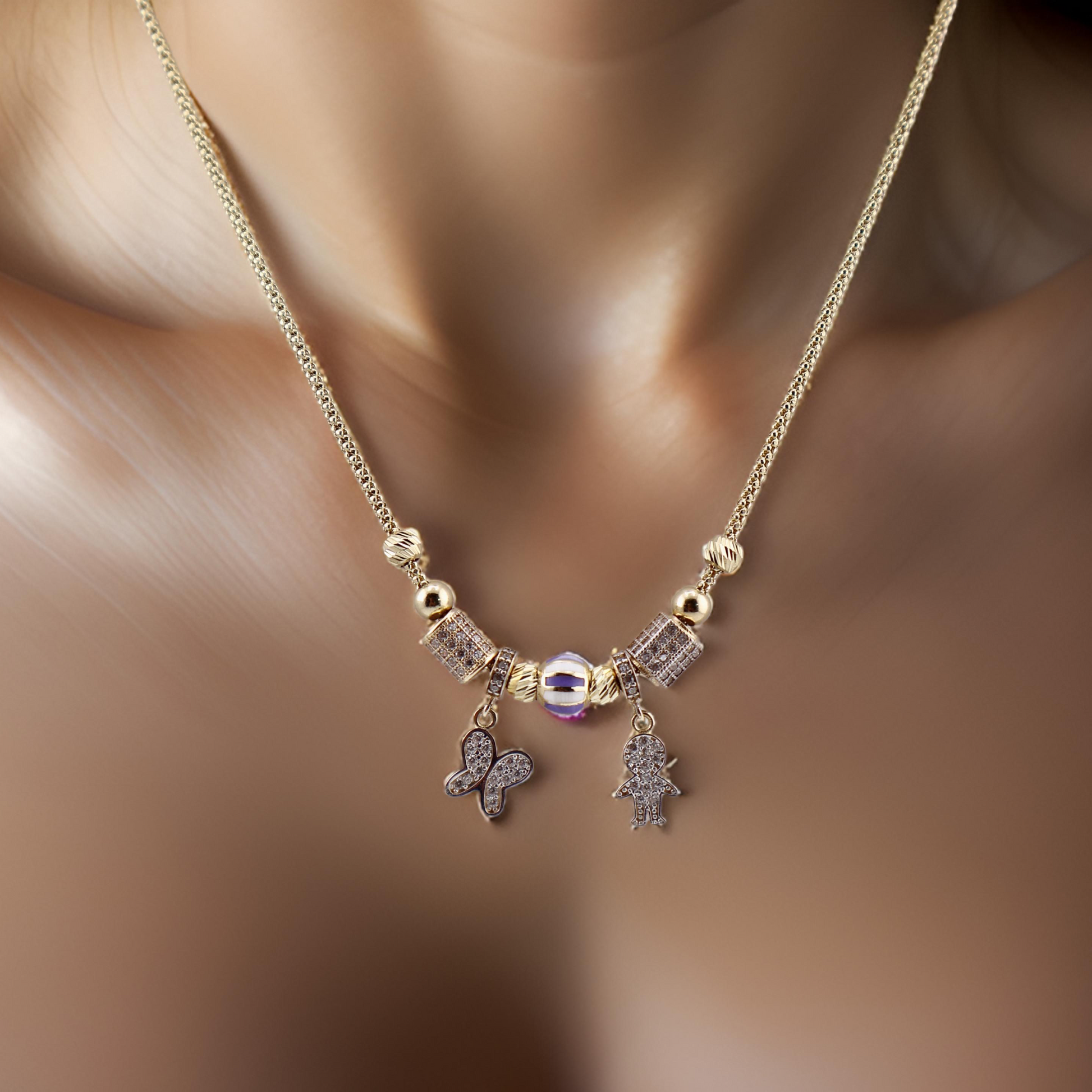 ¡Luce elegante y con estilo con nuestra cadena de oro 14k con un encantador dije de mariposa y niño!