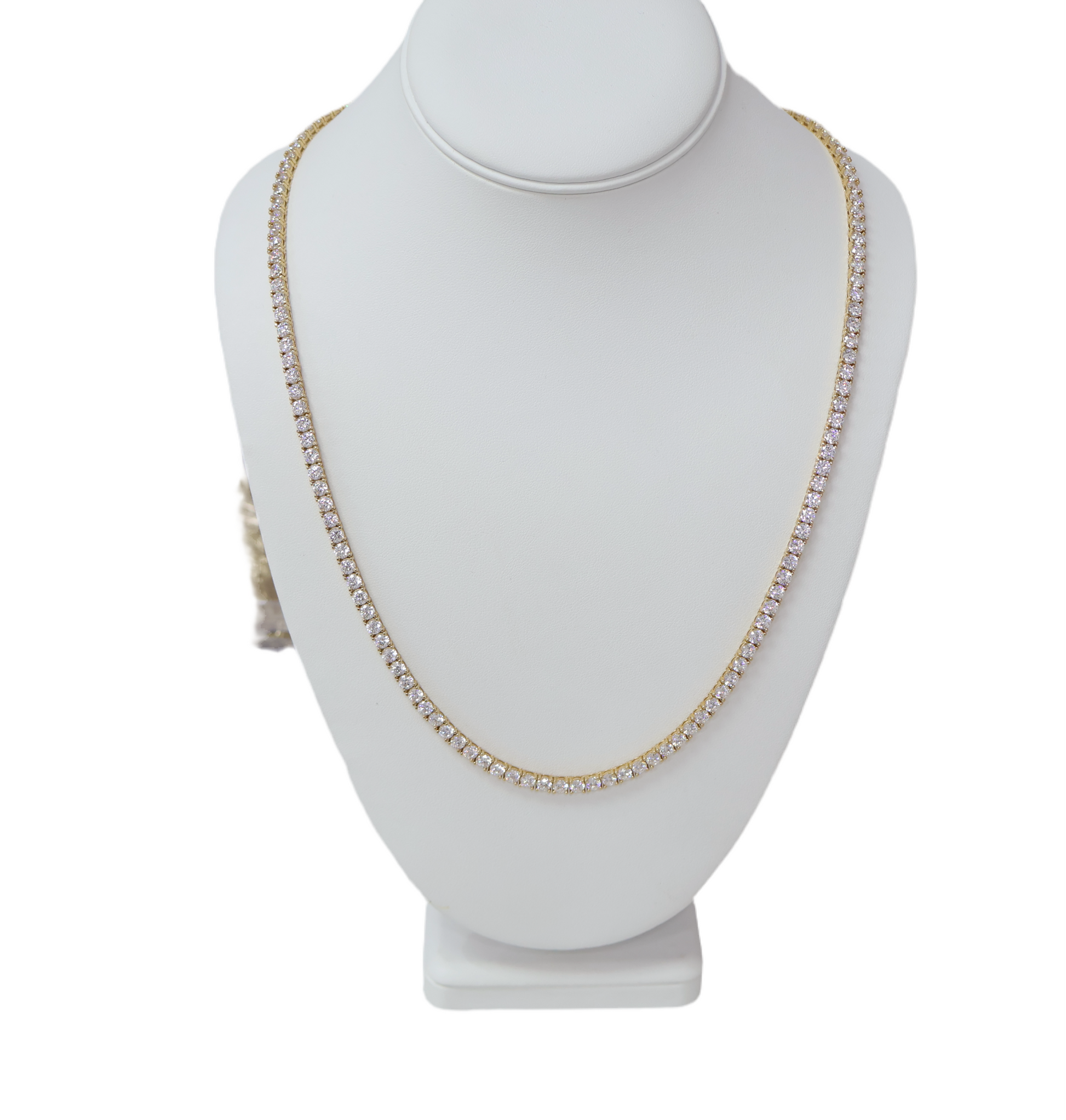 ¡Convierte cualquier atuendo en una elegante declaración de moda con nuestra cadena estilo tenis en oro 10k! Hecha con oro de alta calidad, esta cadena refleja lujo y sofisticación. Perfecta para cualquier ocasión, ¡añade un toque de brillo y estilo con esta cadena imprescindible!