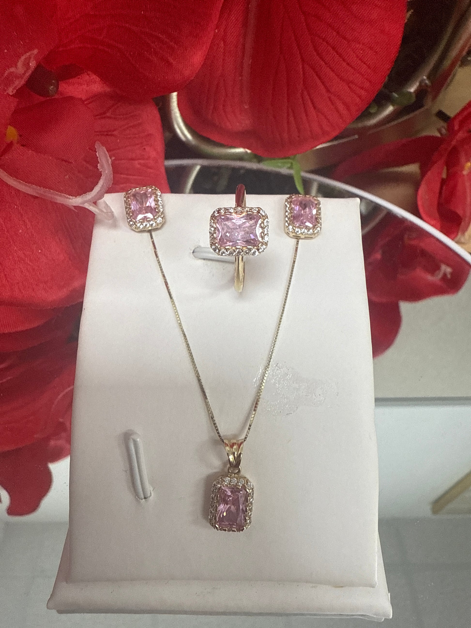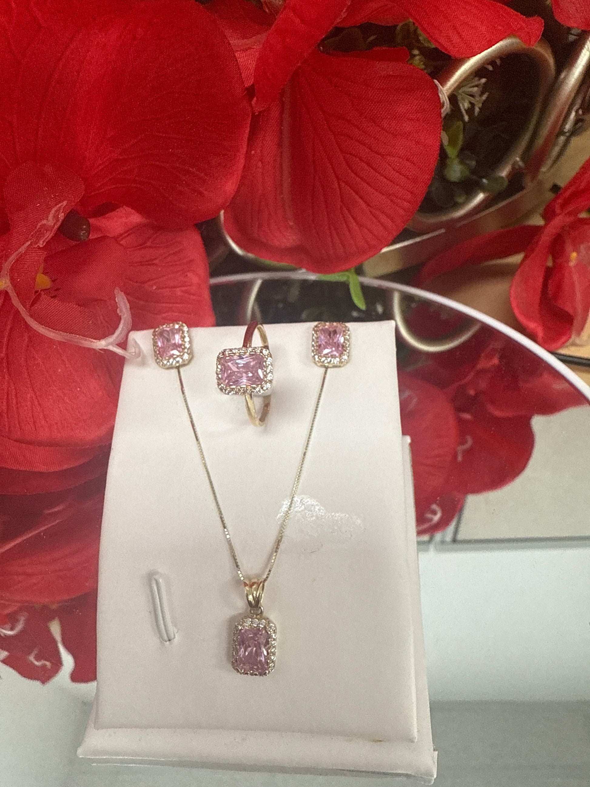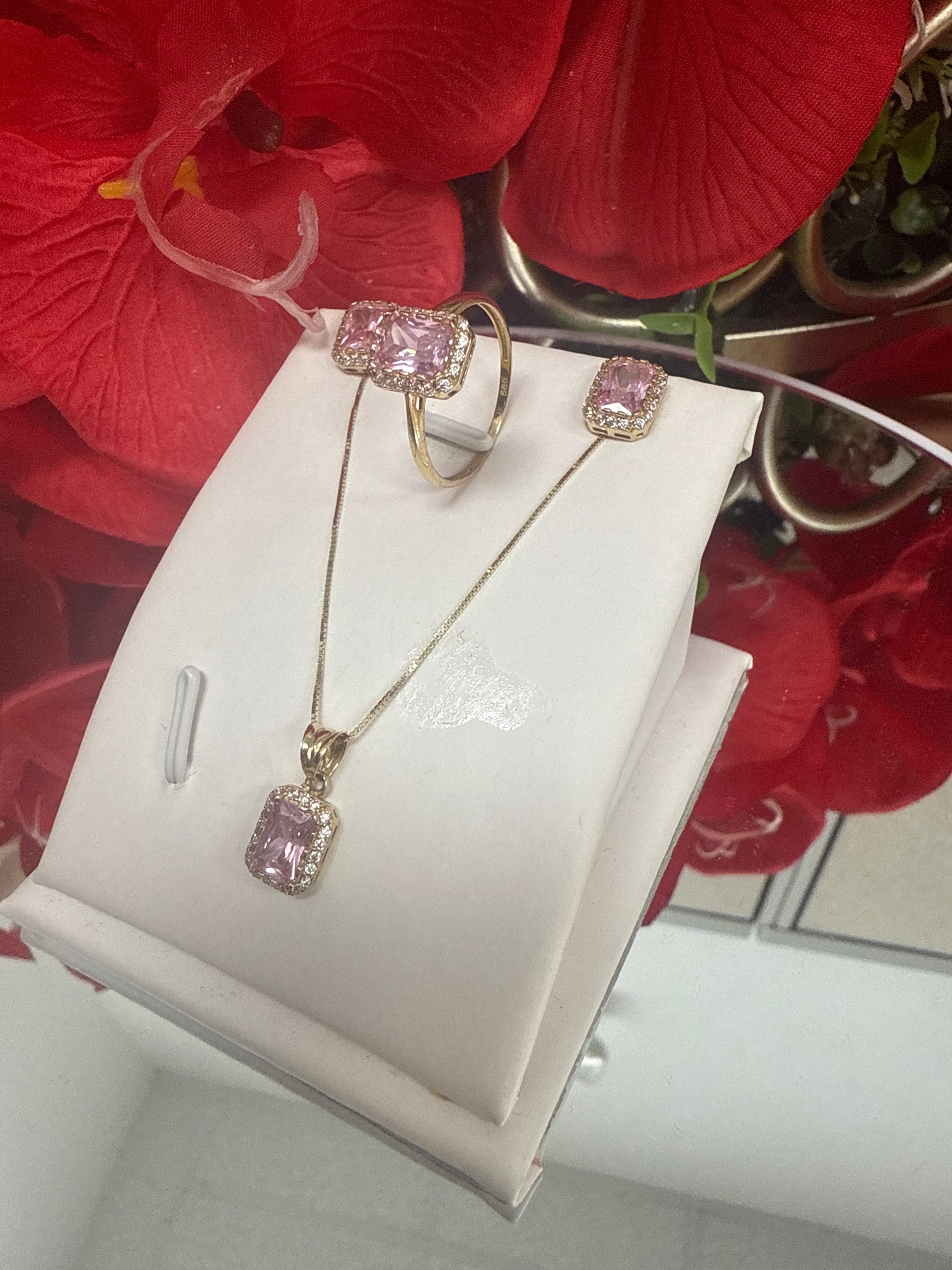 Este conjunto de joyería en oro 14k incluye cadena, dije, anillo y aretes, diseñado para realzar tu elegancia en cualquier ocasión. Cada pieza refleja calidad y sofisticación, aportando un brillo duradero que complementa tu estilo único. Perfecto para quienes buscan un toque de lujo accesible y atemporal.