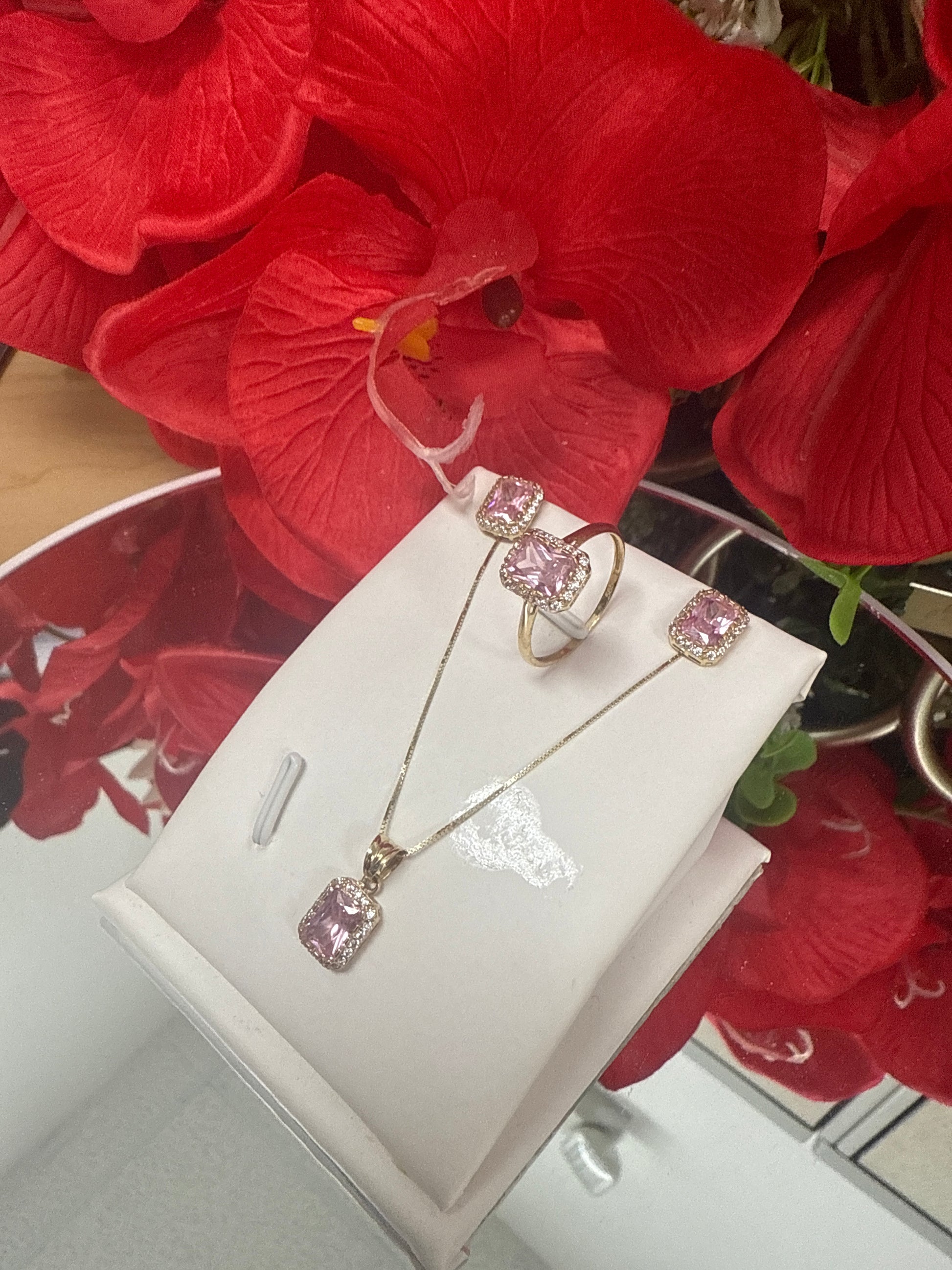 Conjunto de anillo ,arete , cadena y dije de oro 14k para mujer