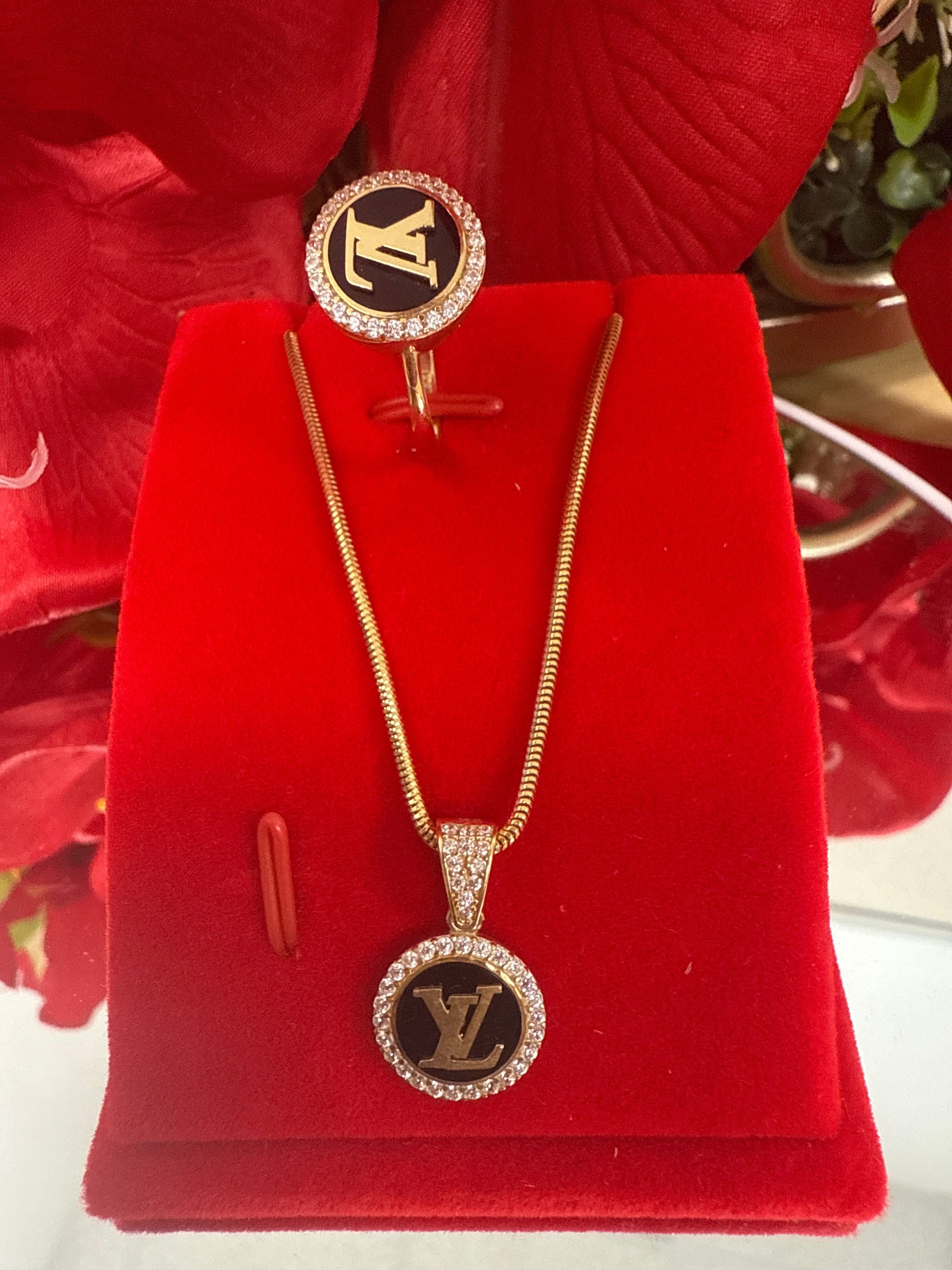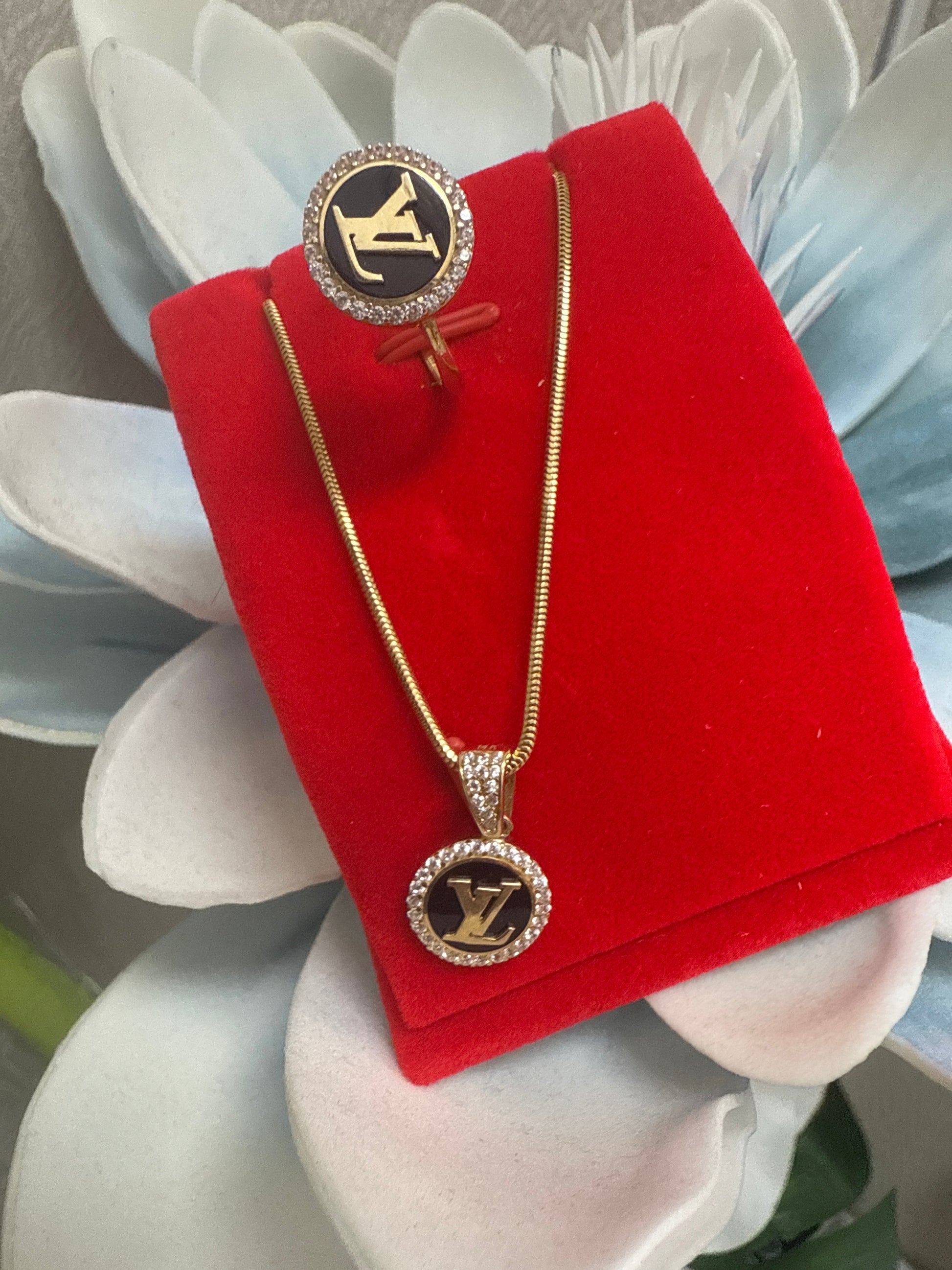 Este conjunto de cadena, dije y anillo LV para mujer, fabricado en oro de 14k, combina elegancia y sofisticación para realzar tu estilo diario. Su diseño exclusivo aporta un toque de lujo y distinción, ideal para destacar en cualquier ocasión. Invierte en calidad y belleza con esta pieza imprescindible que complementará perfectamente tu colección de joyas.