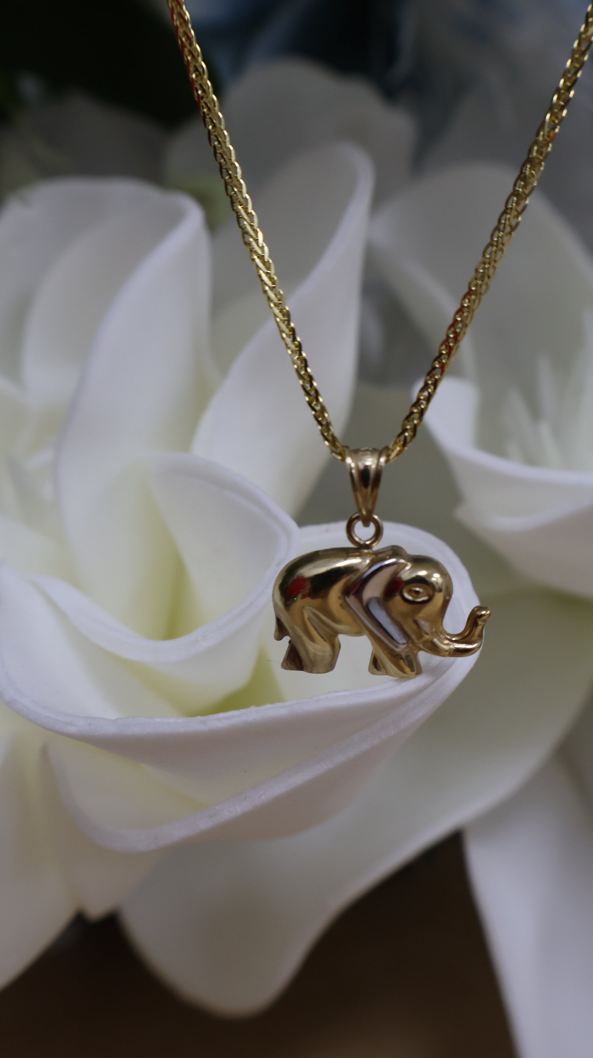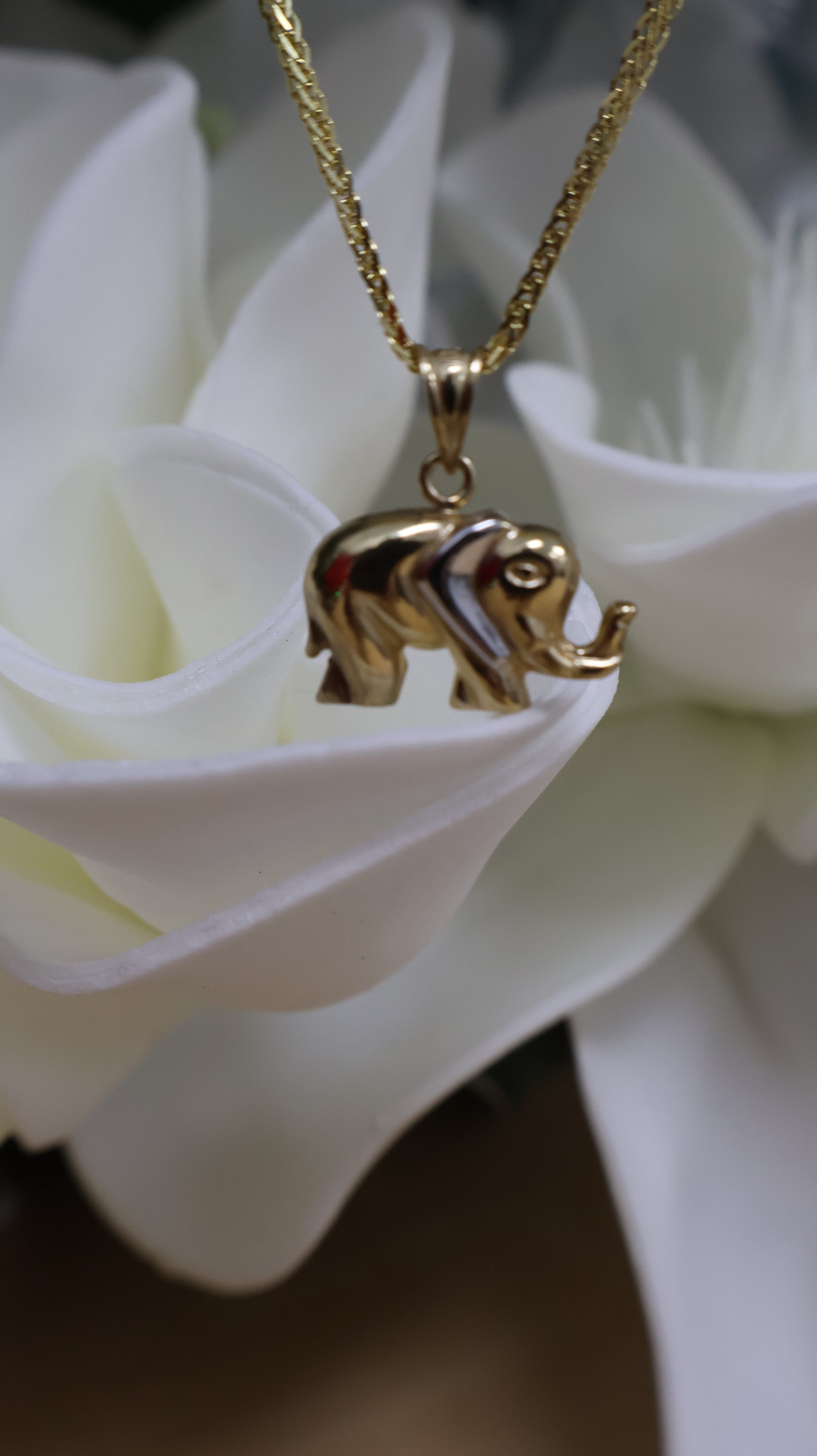 Este dije de elefante en oro de dos colores combina elegancia y simbolismo en una pieza única. Su diseño detallado resalta la belleza del elefante, símbolo de fuerza y buena suerte, mientras que la mezcla de tonos dorados aporta un toque sofisticado y versátil. Perfecto para quienes buscan un accesorio que destaque y transmita significado.