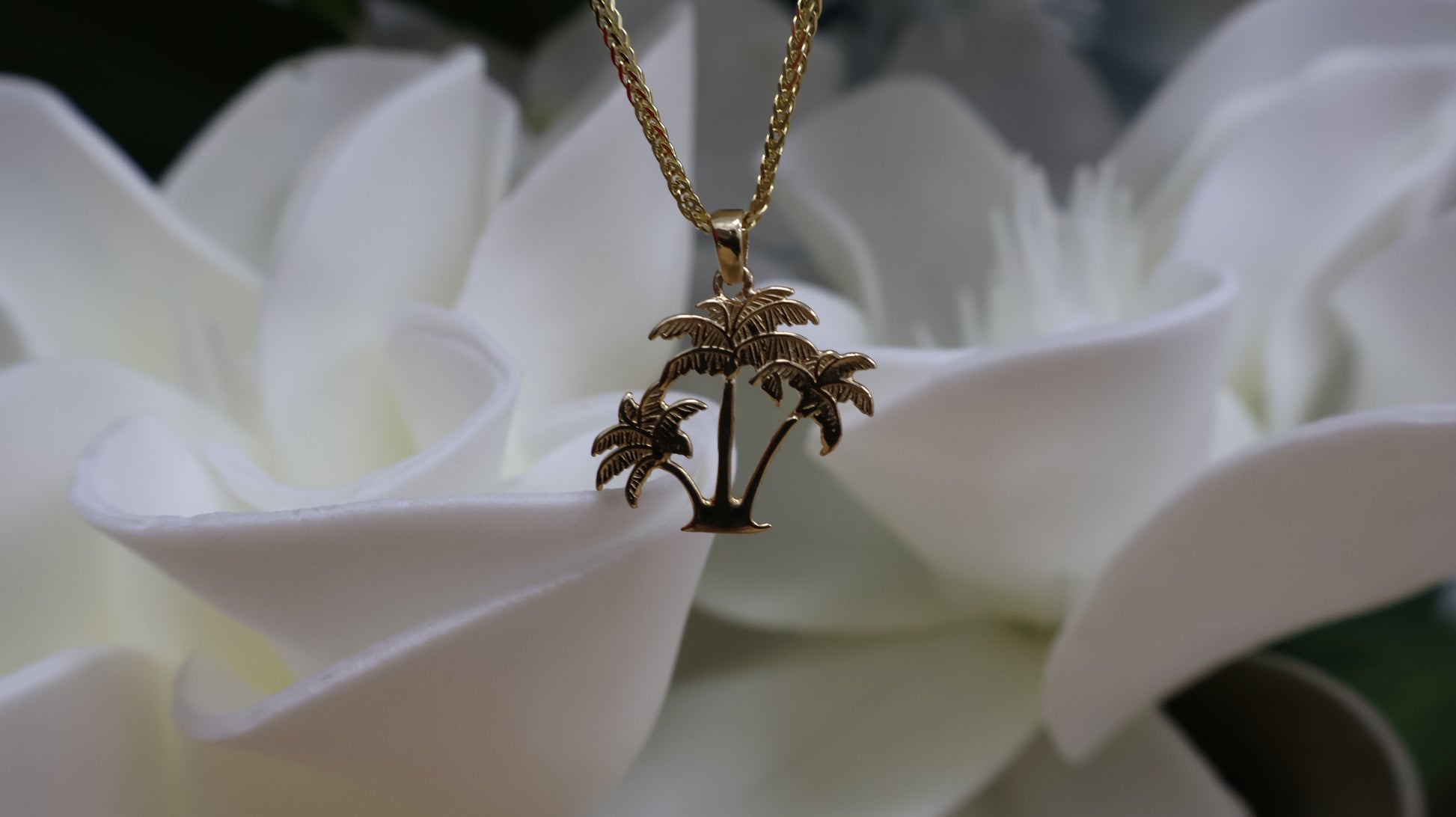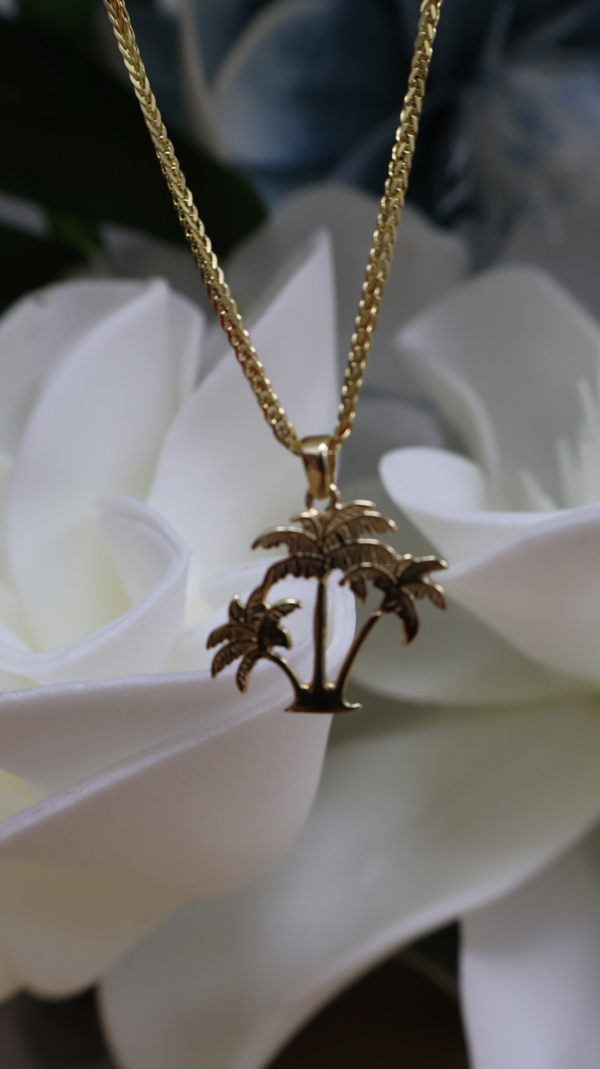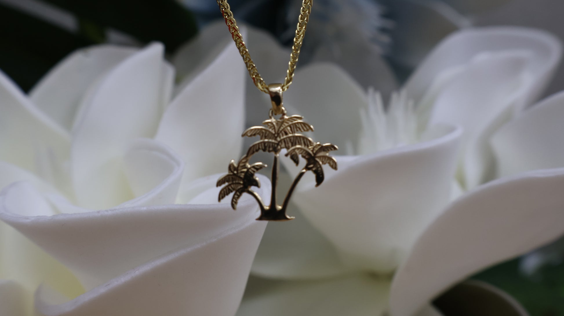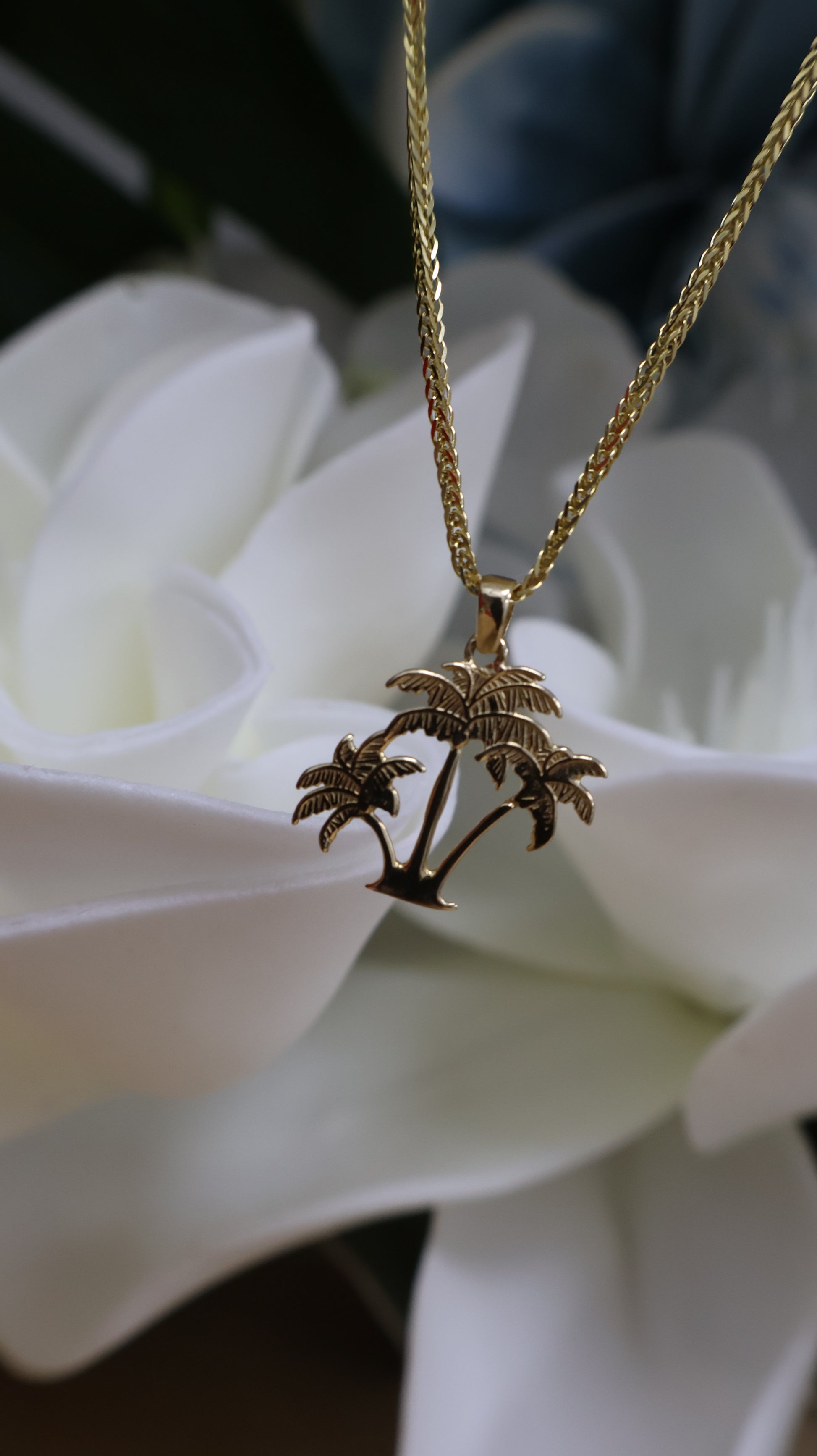 Este dije de 14k con diseño de tres palmas captura la esencia tropical y la elegancia en una pieza única. Su acabado en oro brillante aporta un toque sofisticado, ideal para quienes buscan un accesorio que refleje estilo y conexión con la naturaleza.