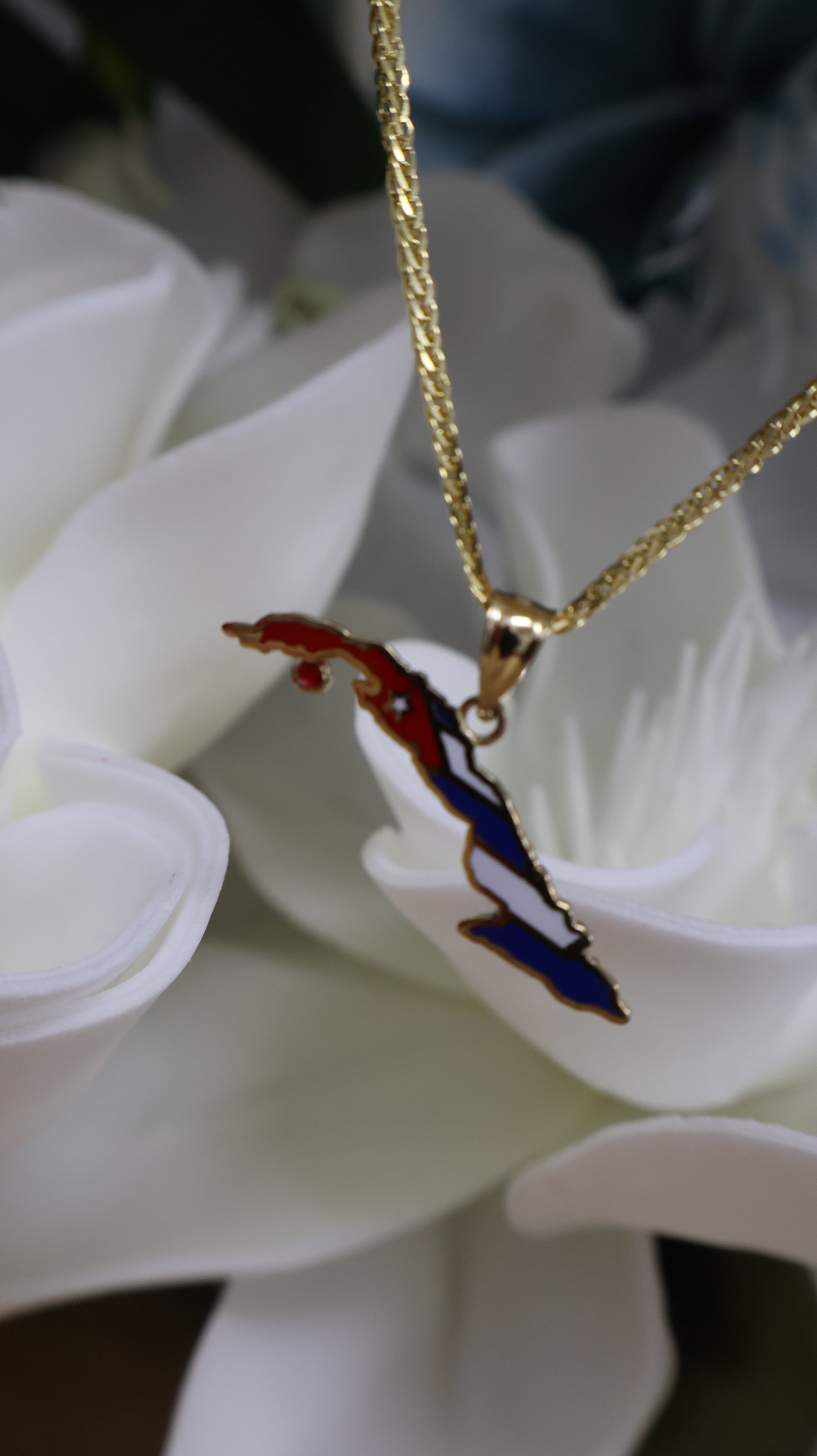 Este dije pequeño de 10k con el mapa de Cuba en colores de la bandera nacional combina orgullo y delicadeza en una pieza compacta. Su diseño detallado y acabado brillante lo hacen ideal para llevar siempre cerca un símbolo de identidad y raíces con estilo y elegancia.