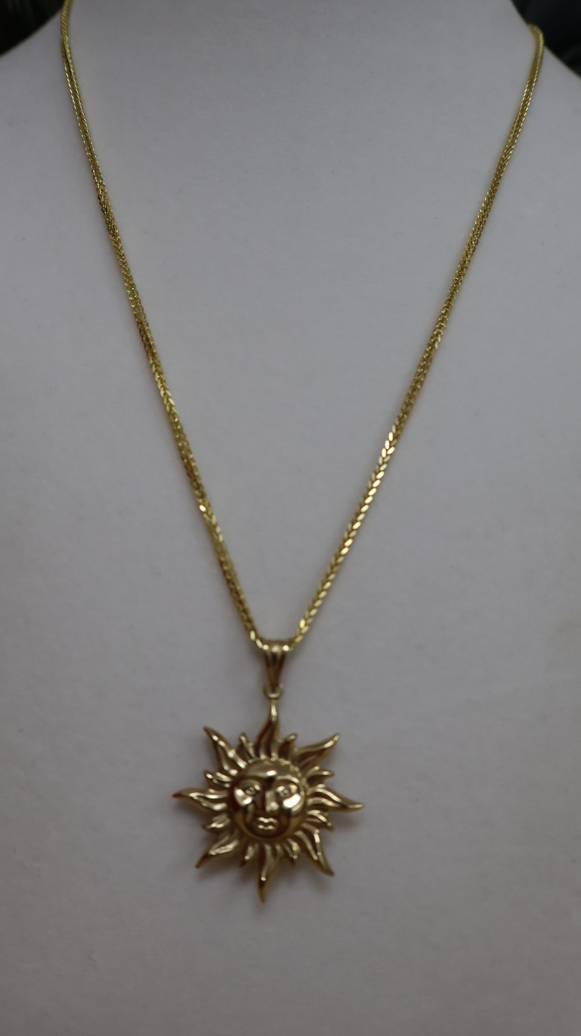 Este dije de sol en oro 10k irradia calidez y energía positiva. Su diseño detallado y acabado brillante lo convierten en un accesorio perfecto para añadir un toque de luz y vitalidad a cualquier look, ideal para quienes buscan un símbolo de optimismo y estilo.