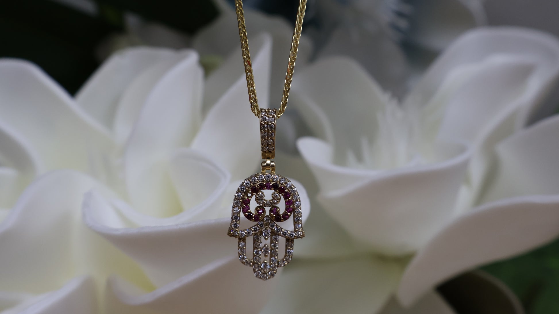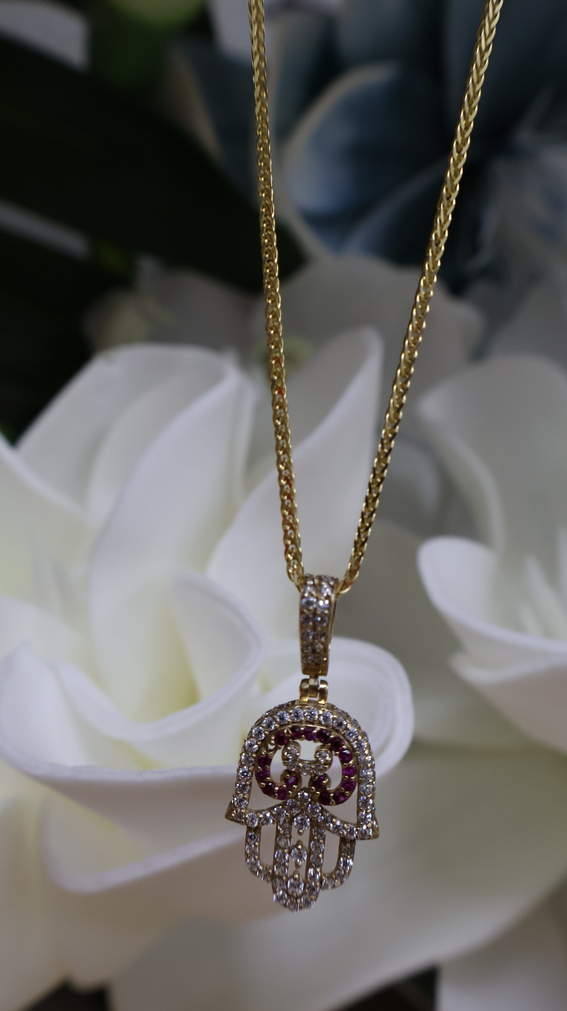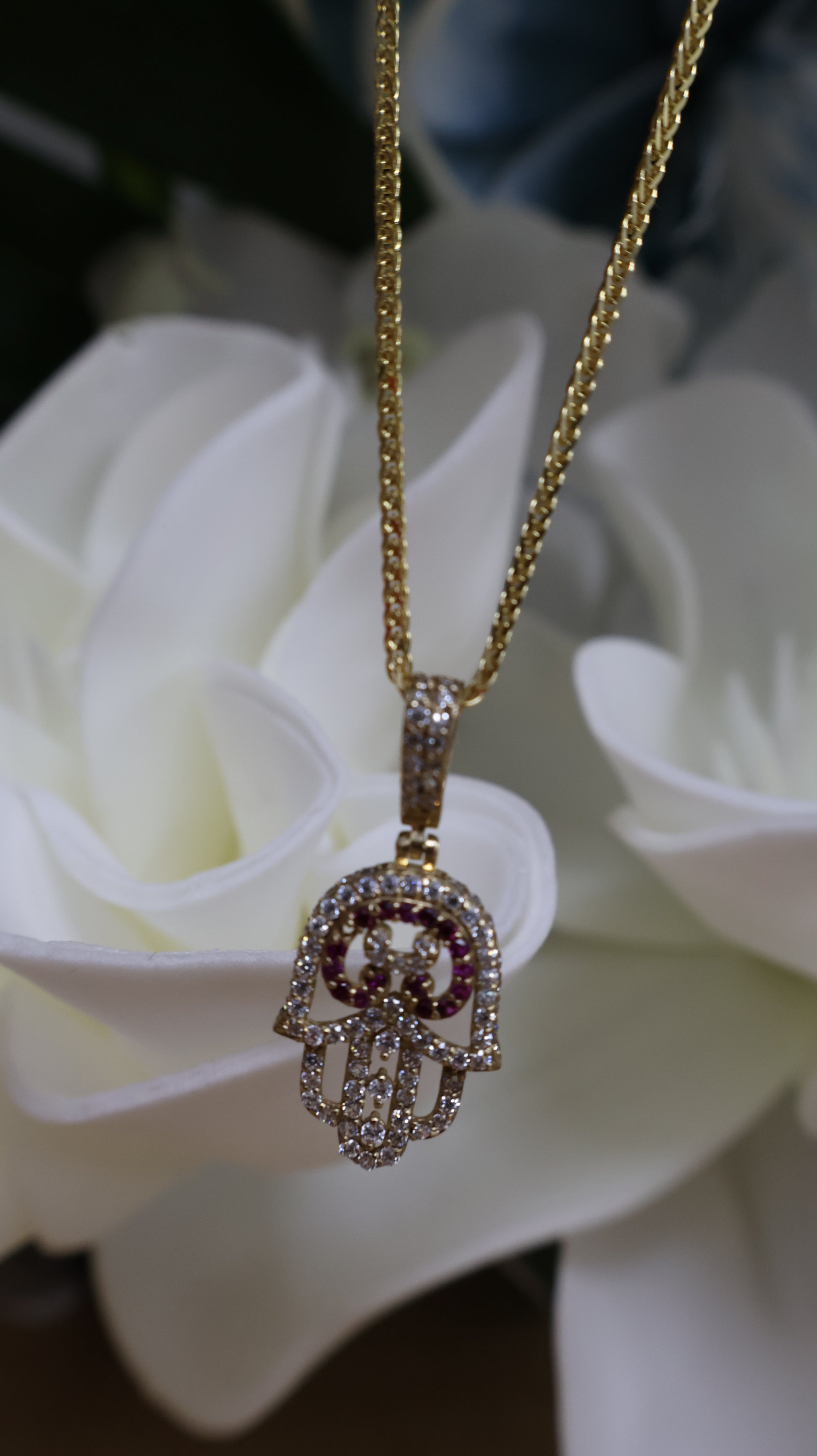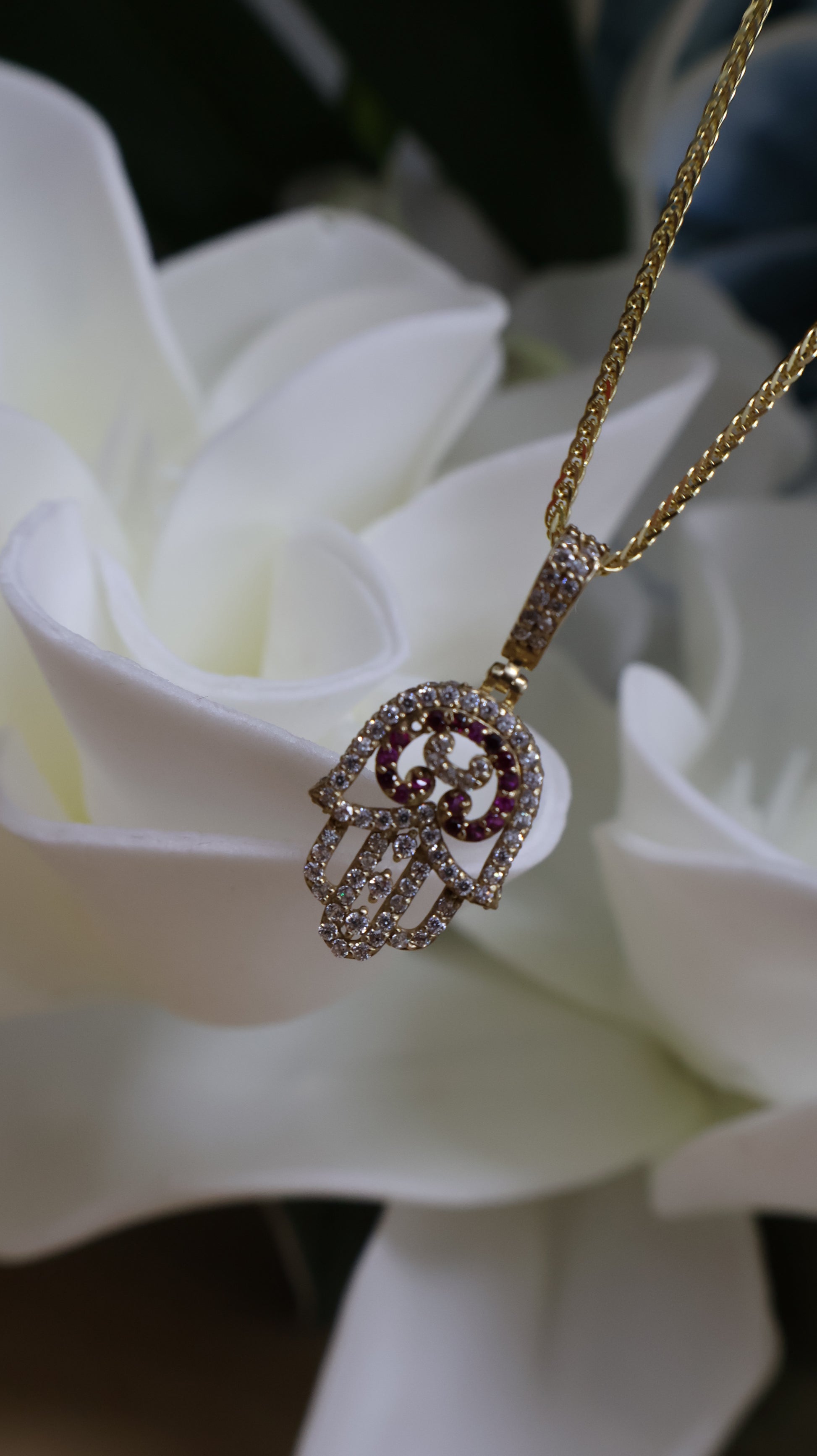 Este colgante de 14k con diseño de la Mano de Fátima ofrece protección y estilo en una pieza elegante. Su acabado en oro brillante y detalles precisos lo convierten en un accesorio significativo que realza cualquier atuendo, ideal para quienes buscan combinar tradición y sofisticación.