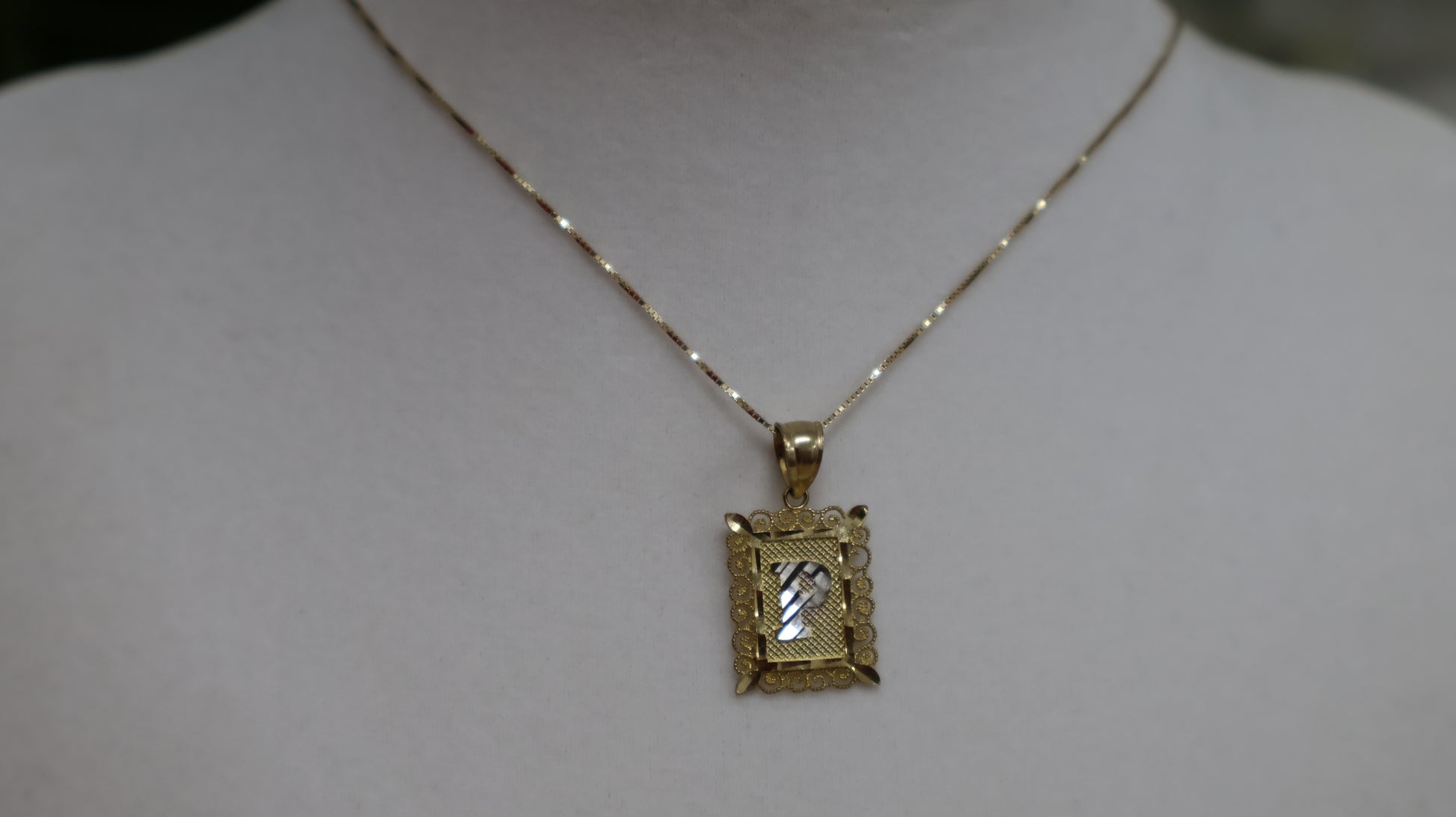 Dije de letra cuadrado con detalle 10k para mujer y para ninos