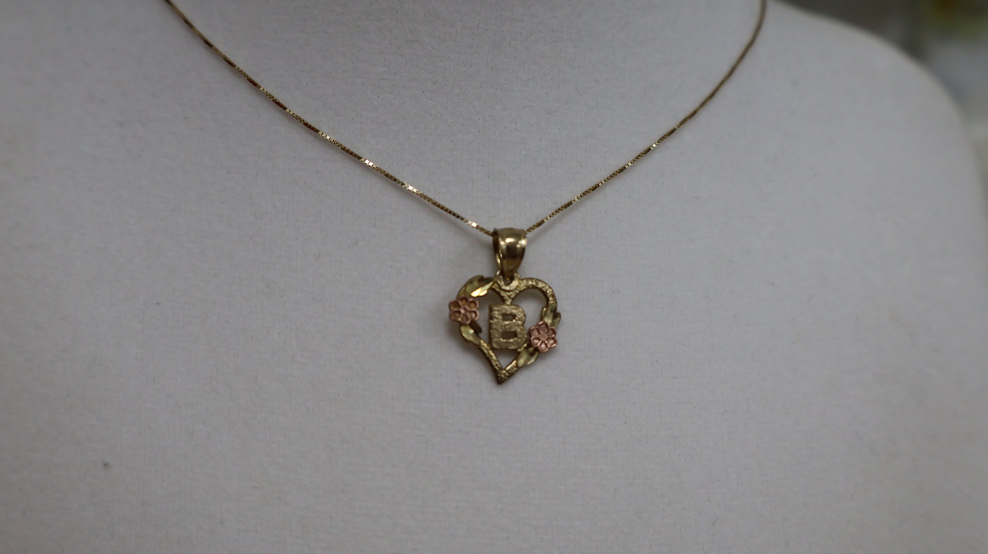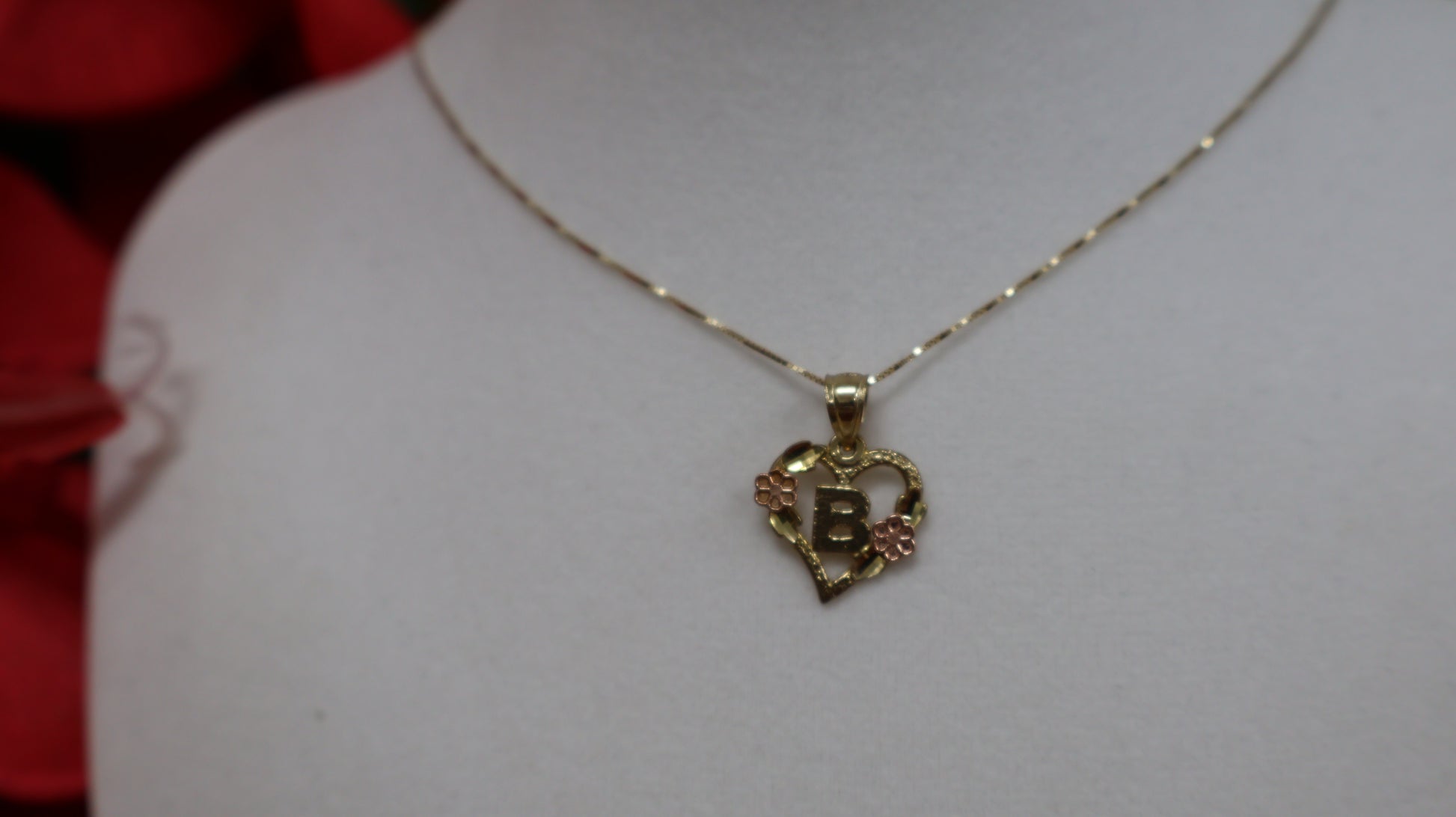 Dije de letra de corazon con 2 flor de oro 10k para mujer y para ninos