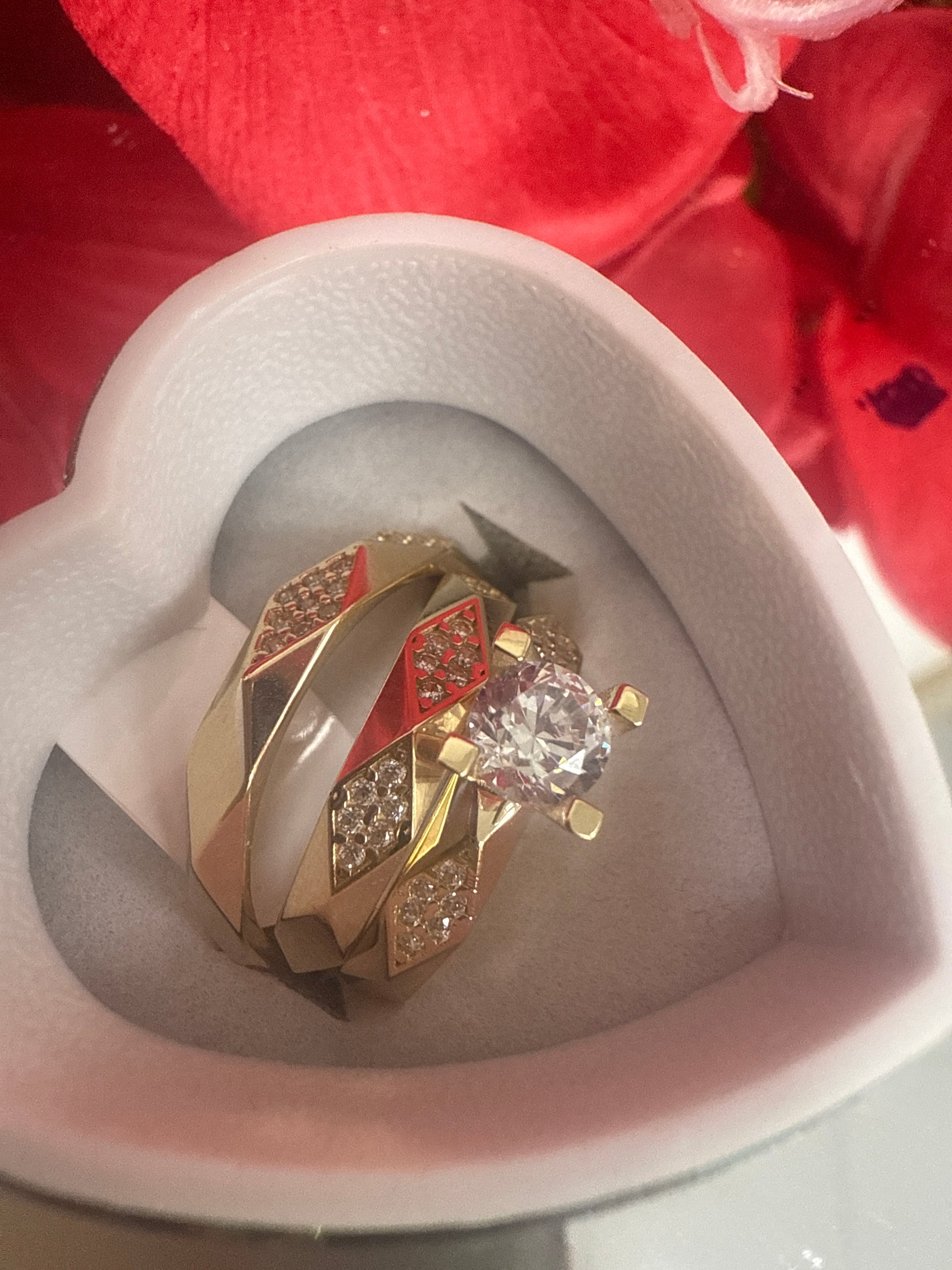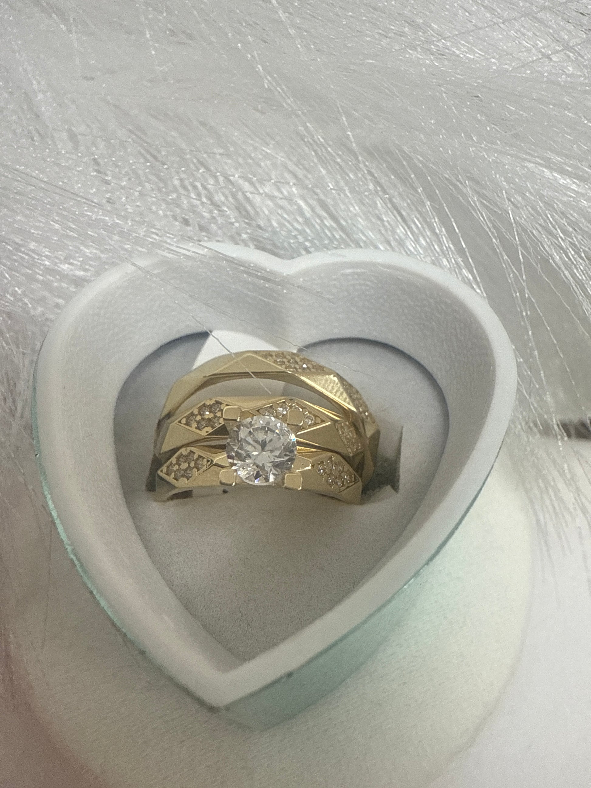 Elegante anillo de compromiso para mujer y hombre en oro 10k