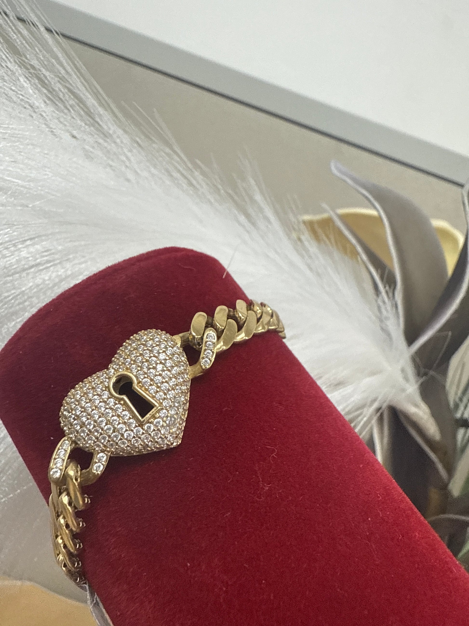 Esta manilla de corazón en oro de 10 quilates combina un diseño elegante con circonias estilo Mónaco, que ofrecen un brillo sutil y sofisticado. Su acabado impecable y detalles delicados la convierten en una joya ideal para quienes aprecian la calidad y el estilo refinado en cada accesorio.