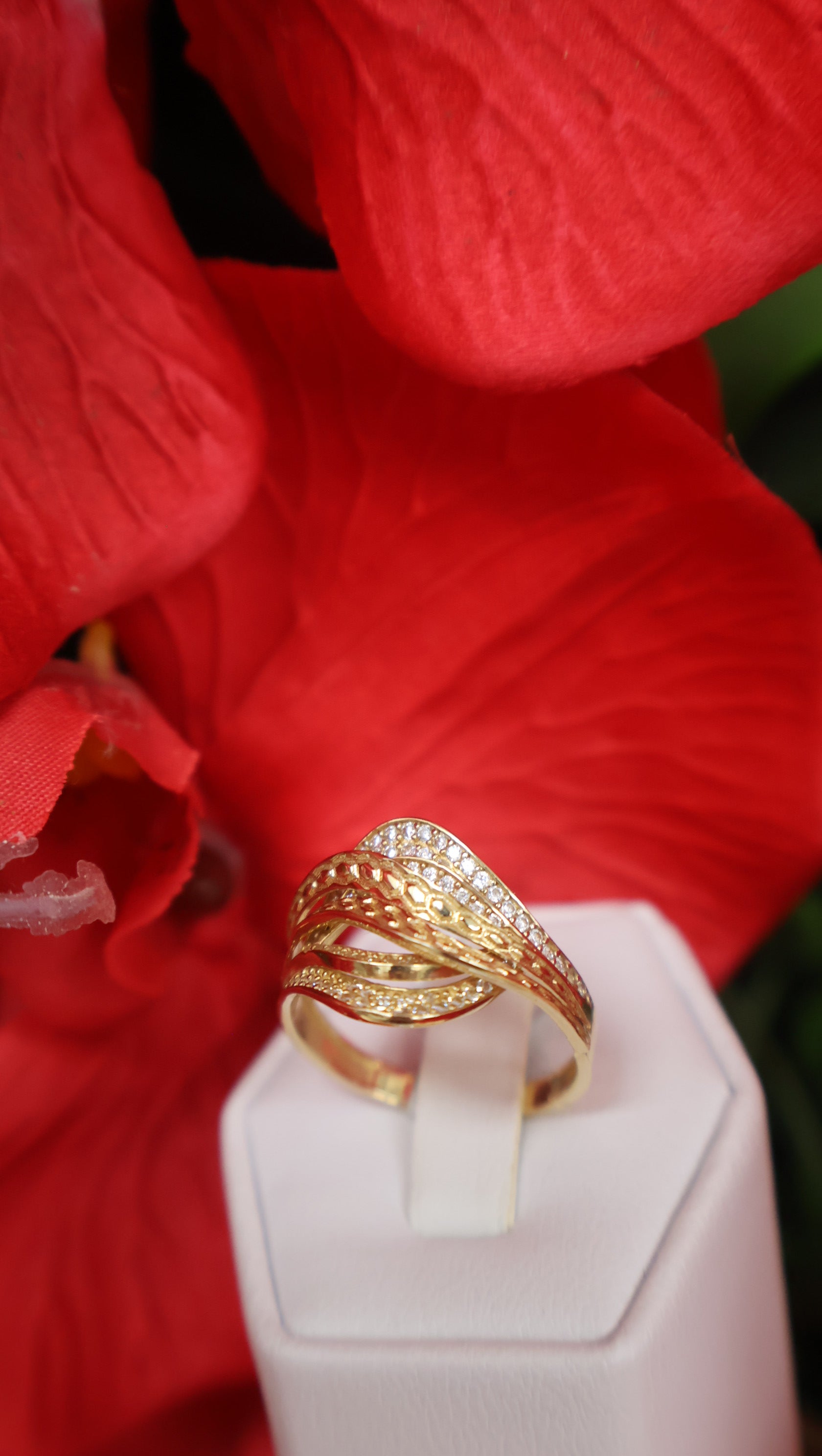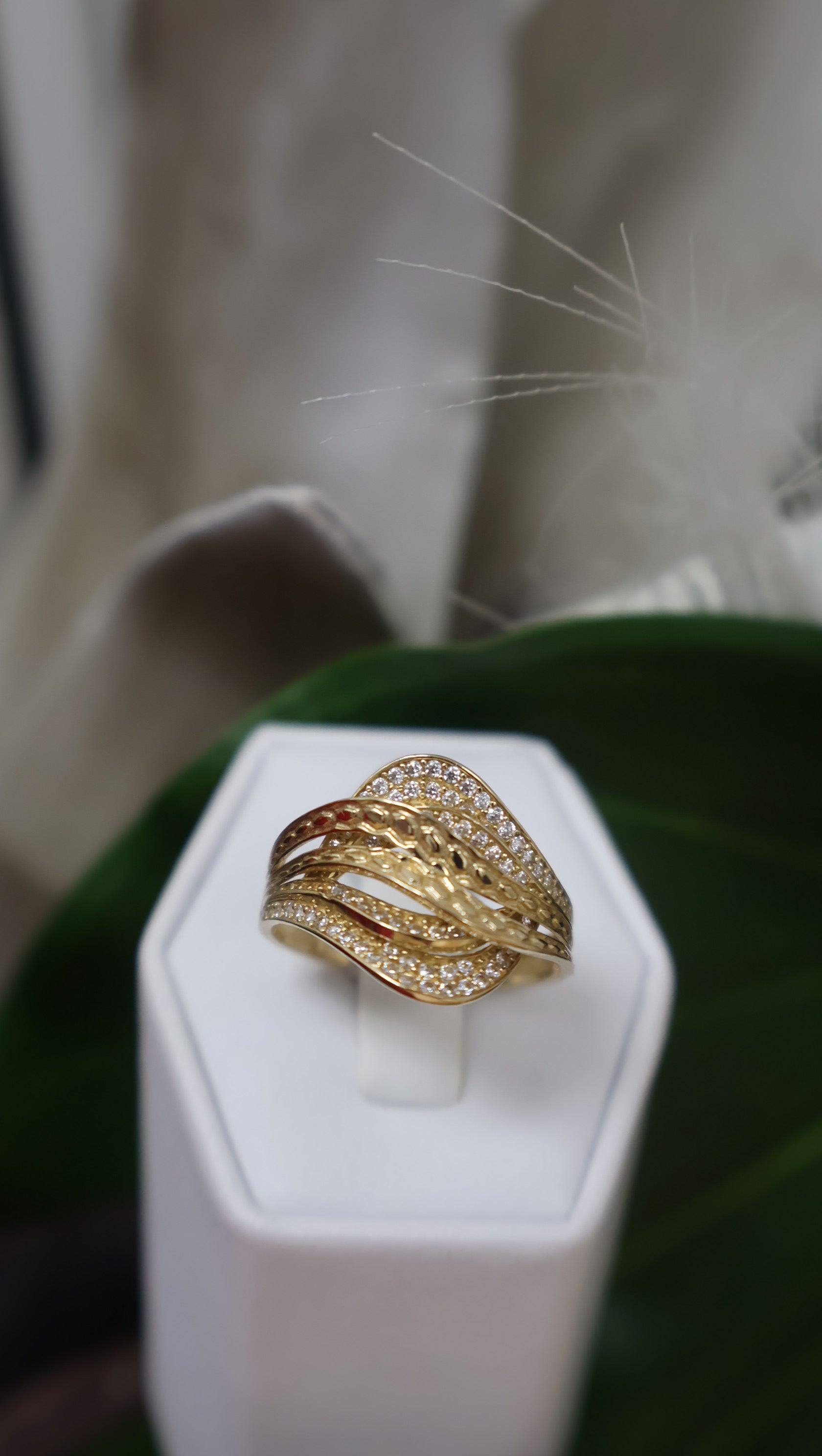Este anillo de oro 14k con diseño continental destaca por su elegancia y sofisticación. La circonia brillante añade un toque de lujo y resplandor, haciendo que esta pieza sea perfecta para quienes buscan un accesorio que combine estilo y calidad duradera. Ideal para complementar cualquier look con un detalle único y refinado.