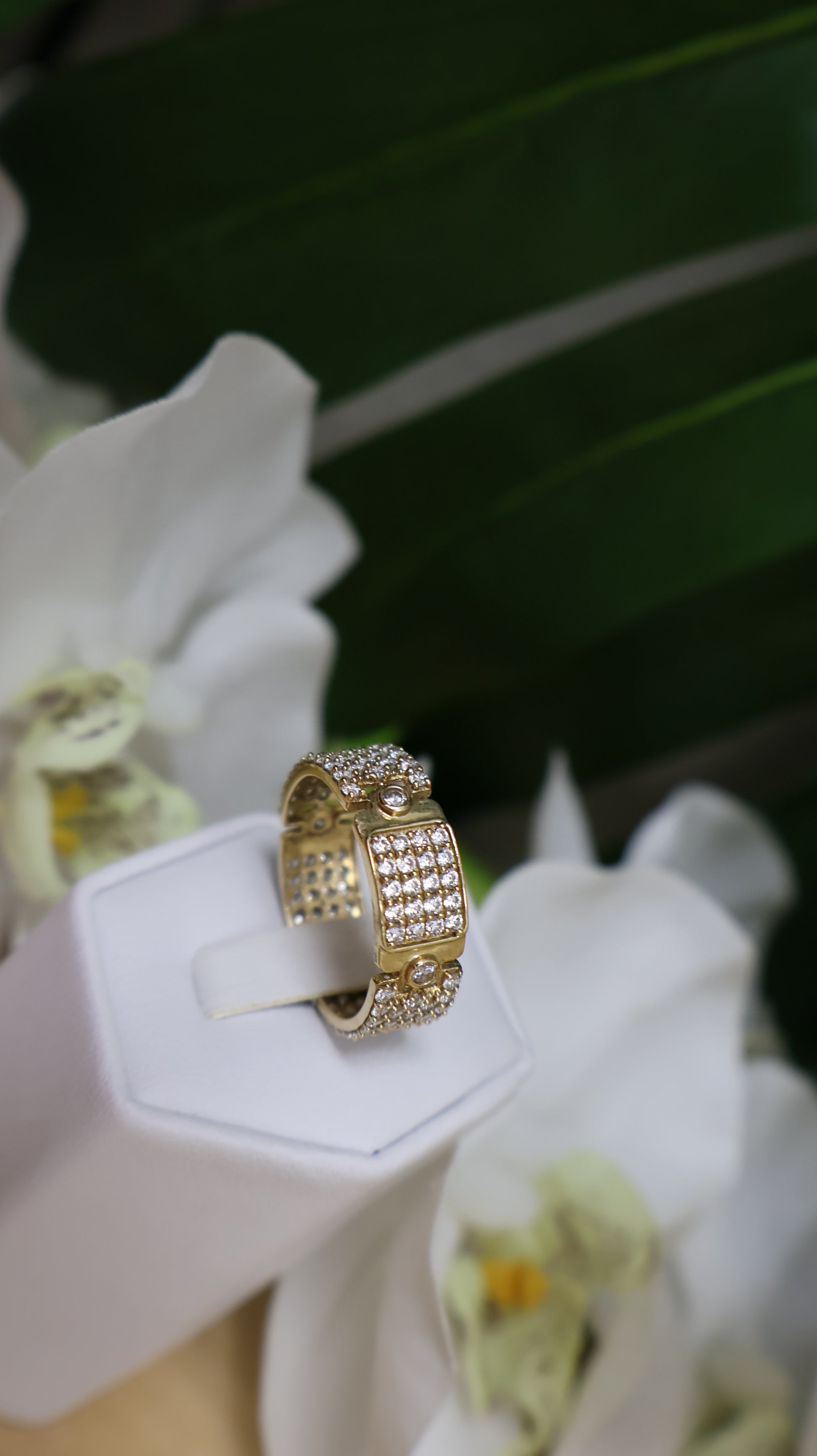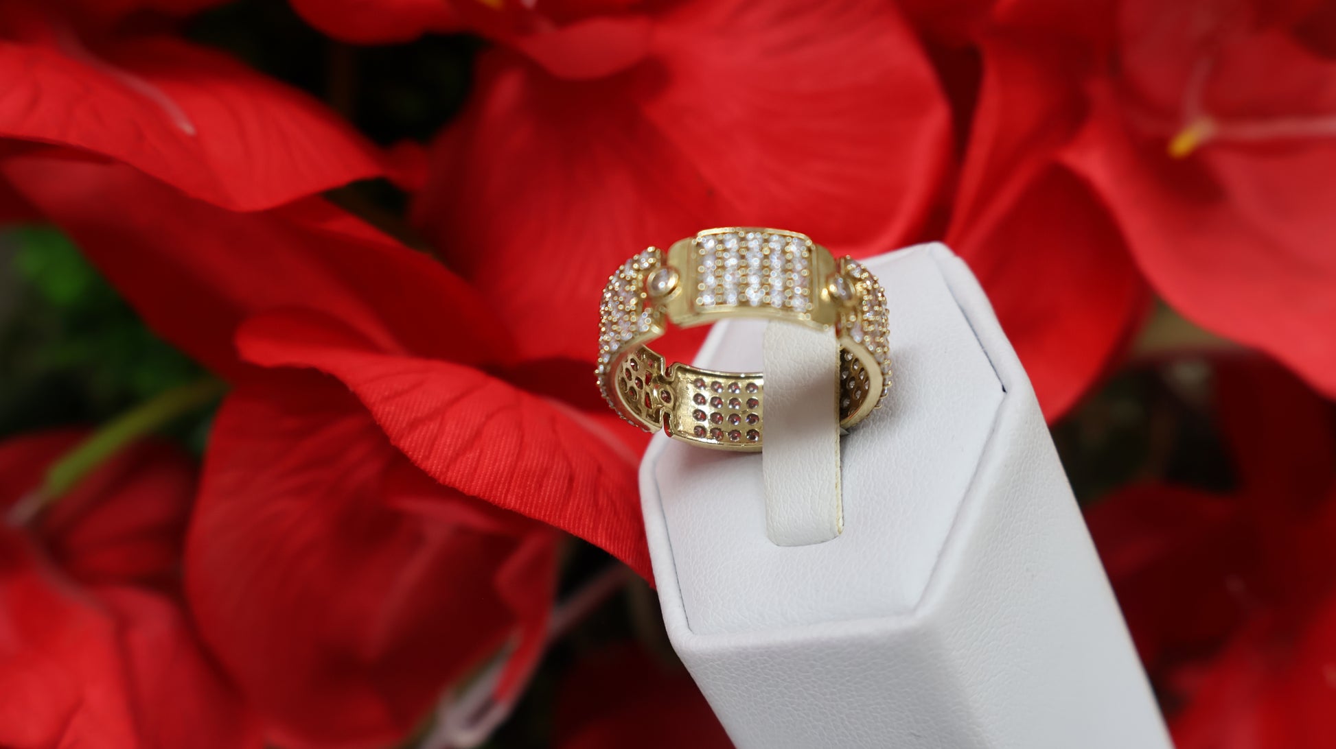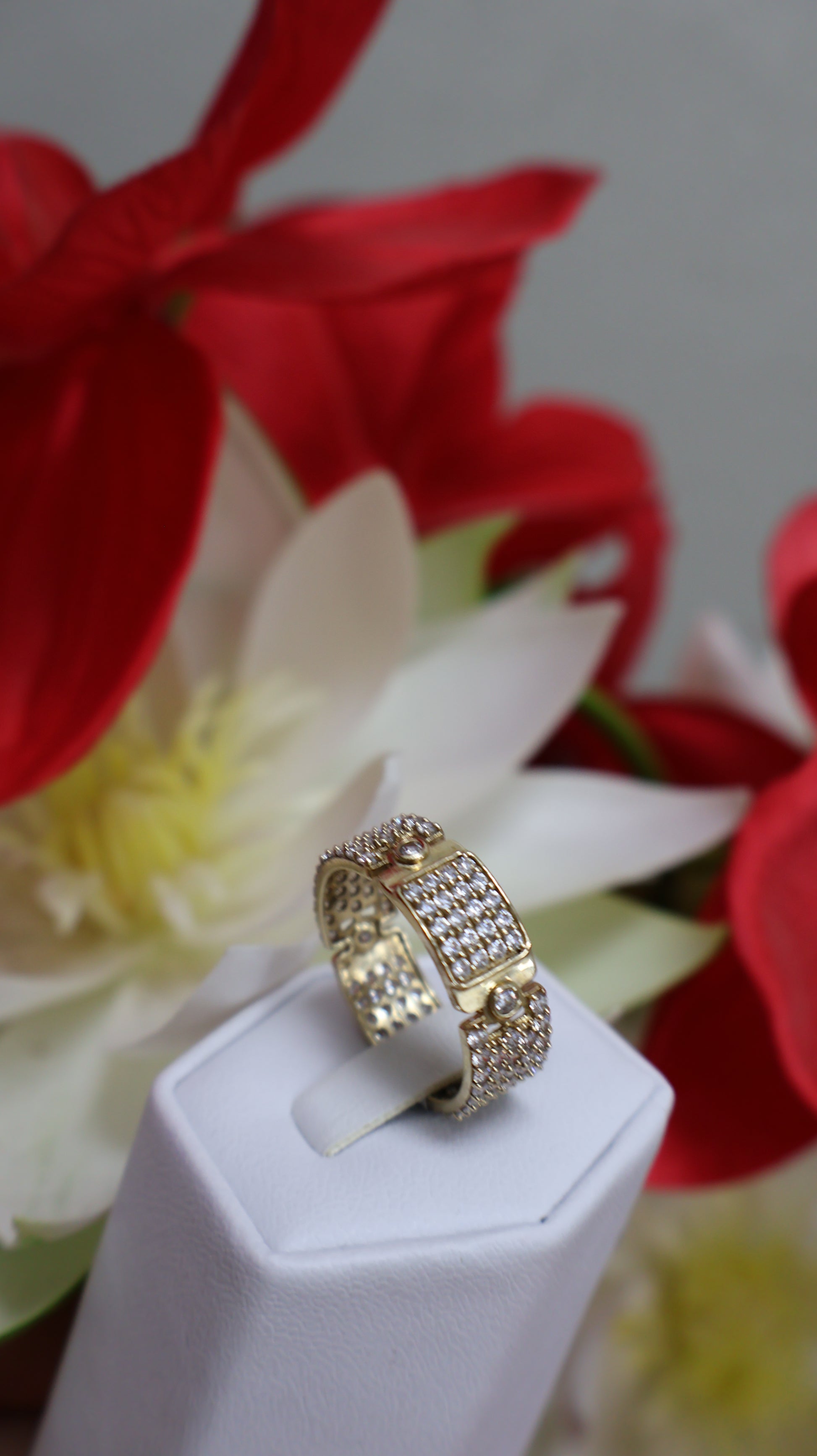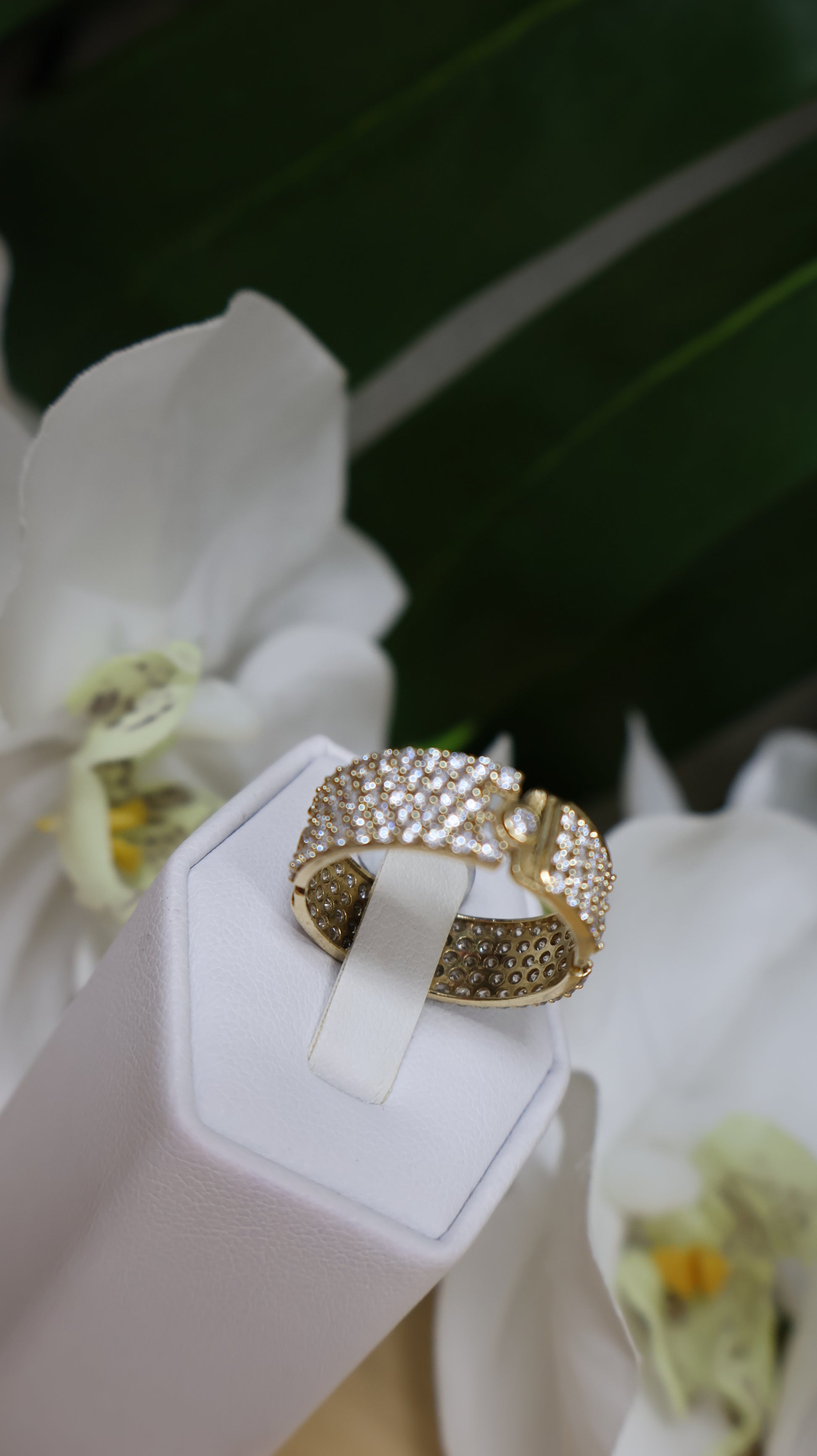 Este anillo enlazado está cubierto con brillantes ciconias blancas que aportan un brillo excepcional y un toque de elegancia. Fabricado con materiales de alta calidad, combina diseño sofisticado y durabilidad, ideal para quienes buscan una pieza que destaque y realce su estilo con sofisticación y luminosidad.