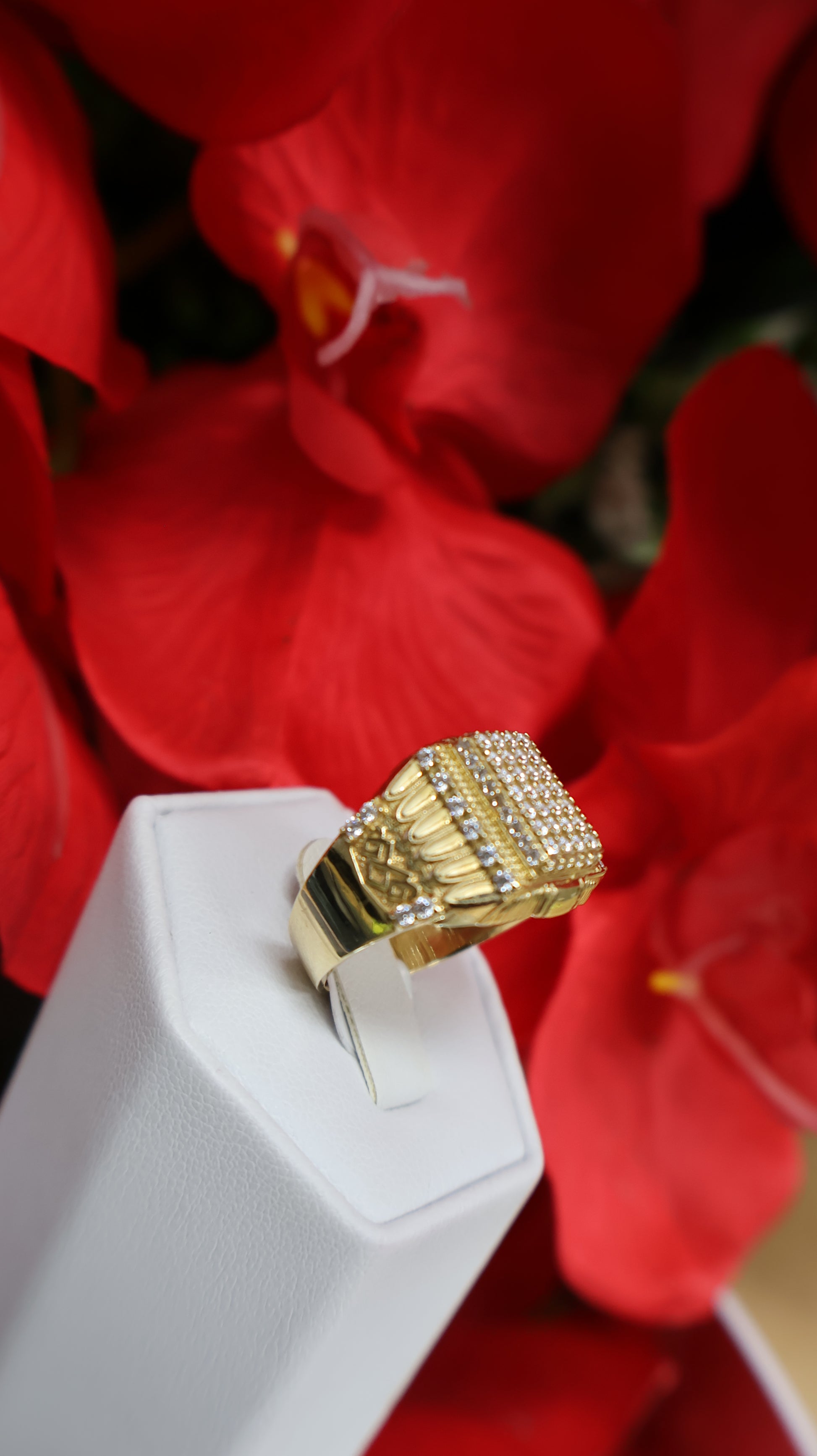 Este anillo de 10k combina un diseño moderno con la majestuosidad de un rey, ofreciendo una pieza que destaca por su estilo contemporáneo y elegancia. Fabricado en oro puro, es perfecto para quienes buscan un accesorio que refleje poder y sofisticación en cada detalle.