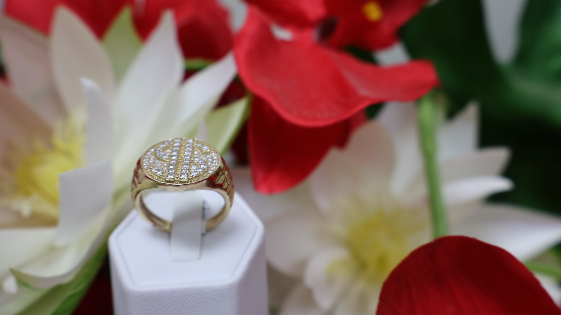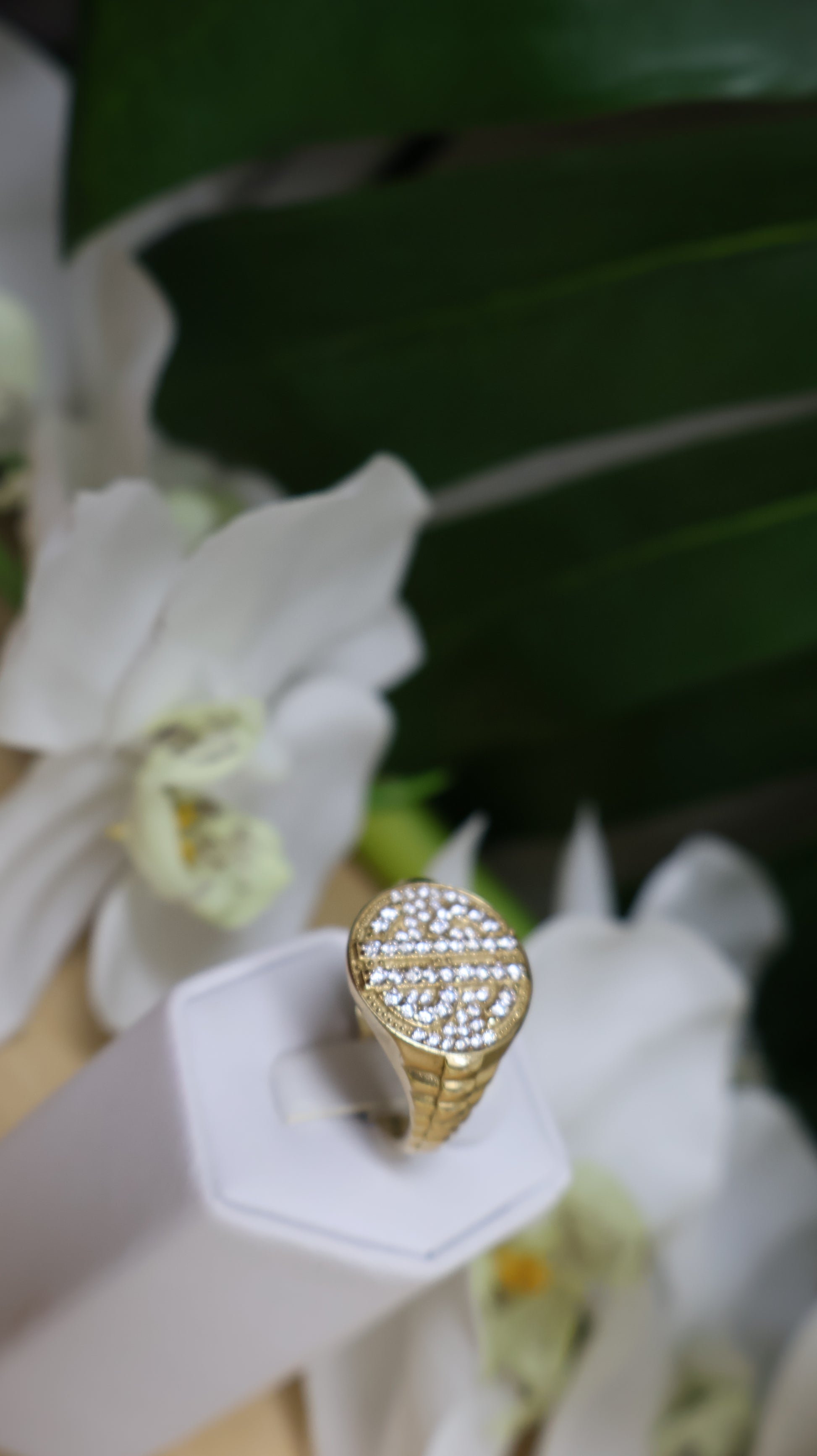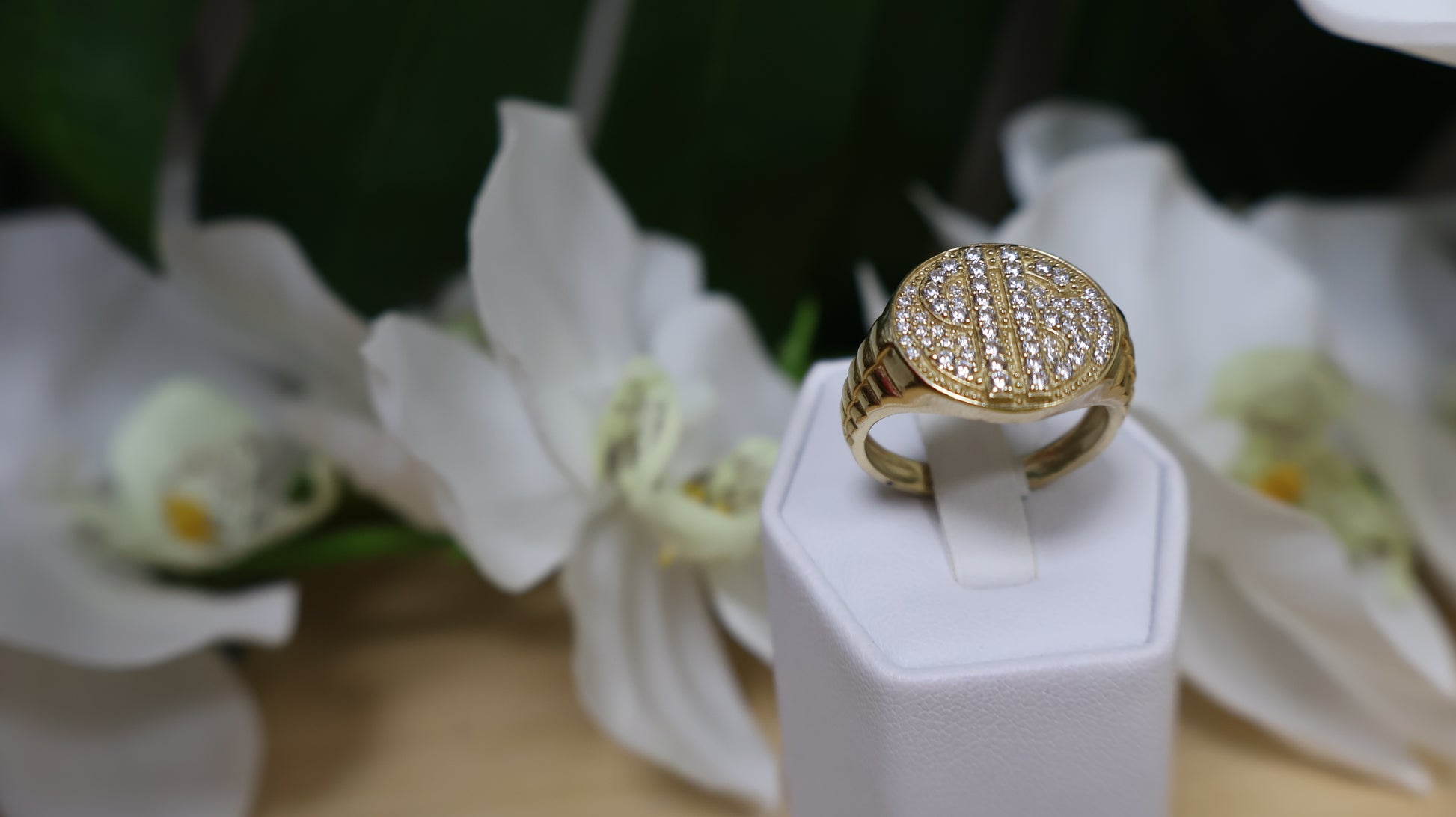 anillo de 10k de hombre con el signo de $ y con sirconia