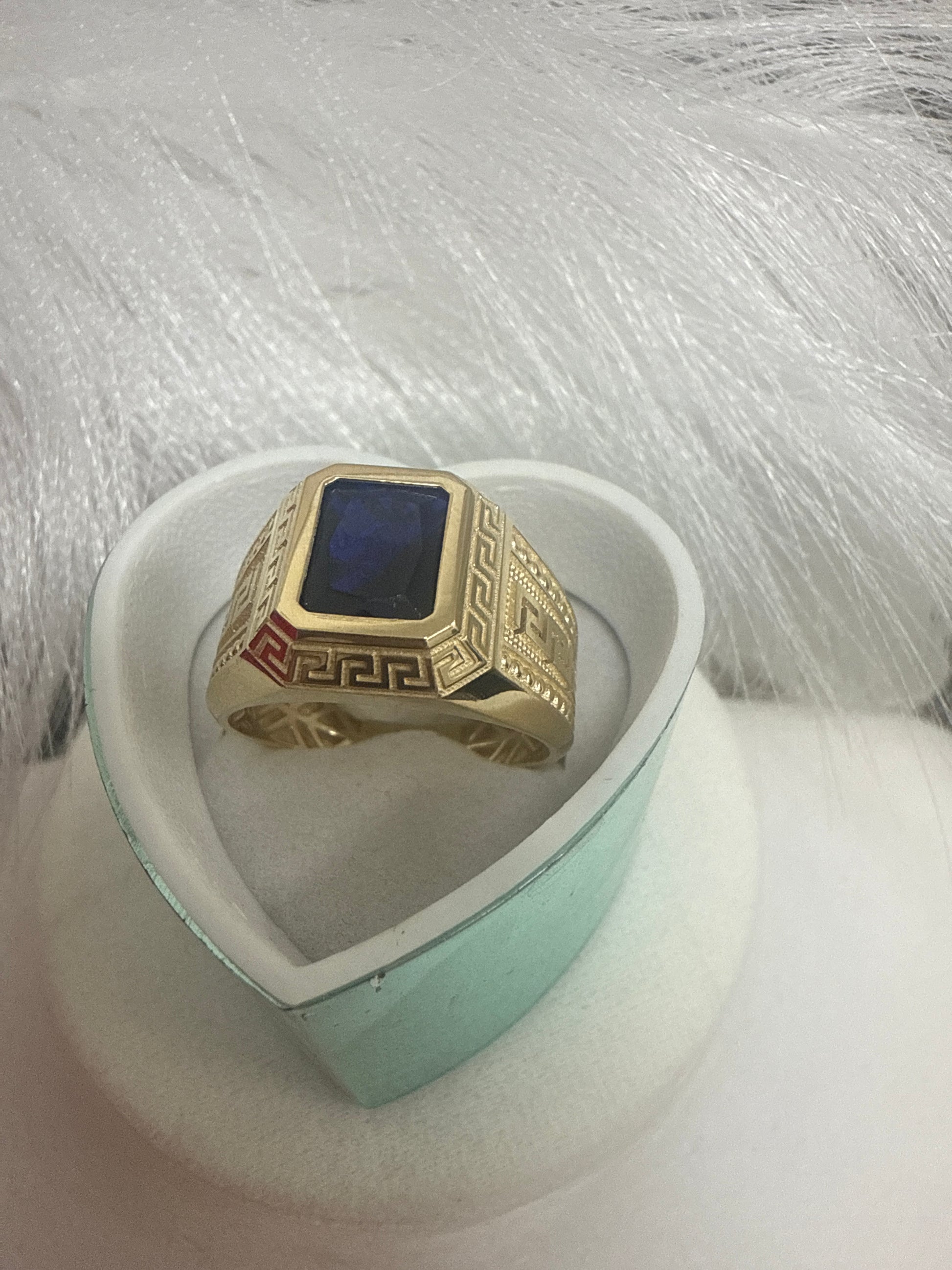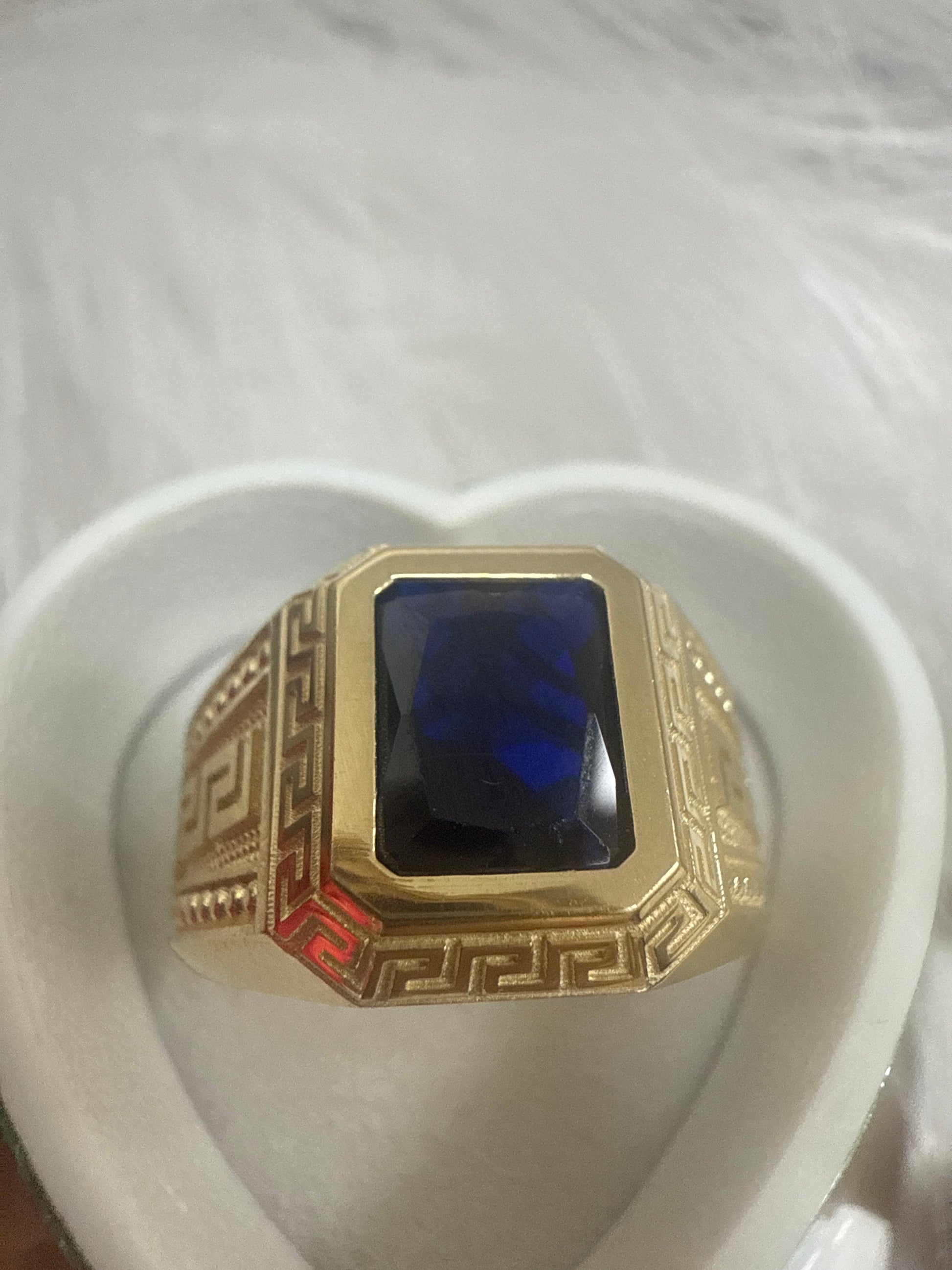 Anillo de hombre de piedra en azul de oro 10k .