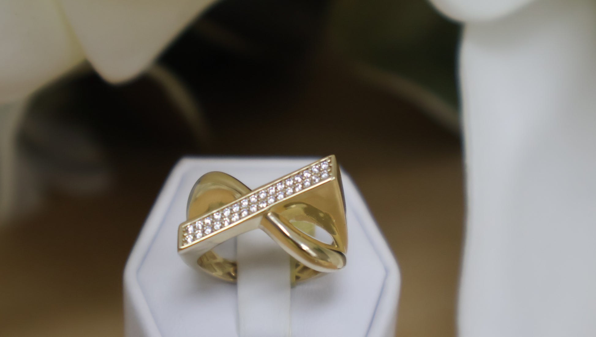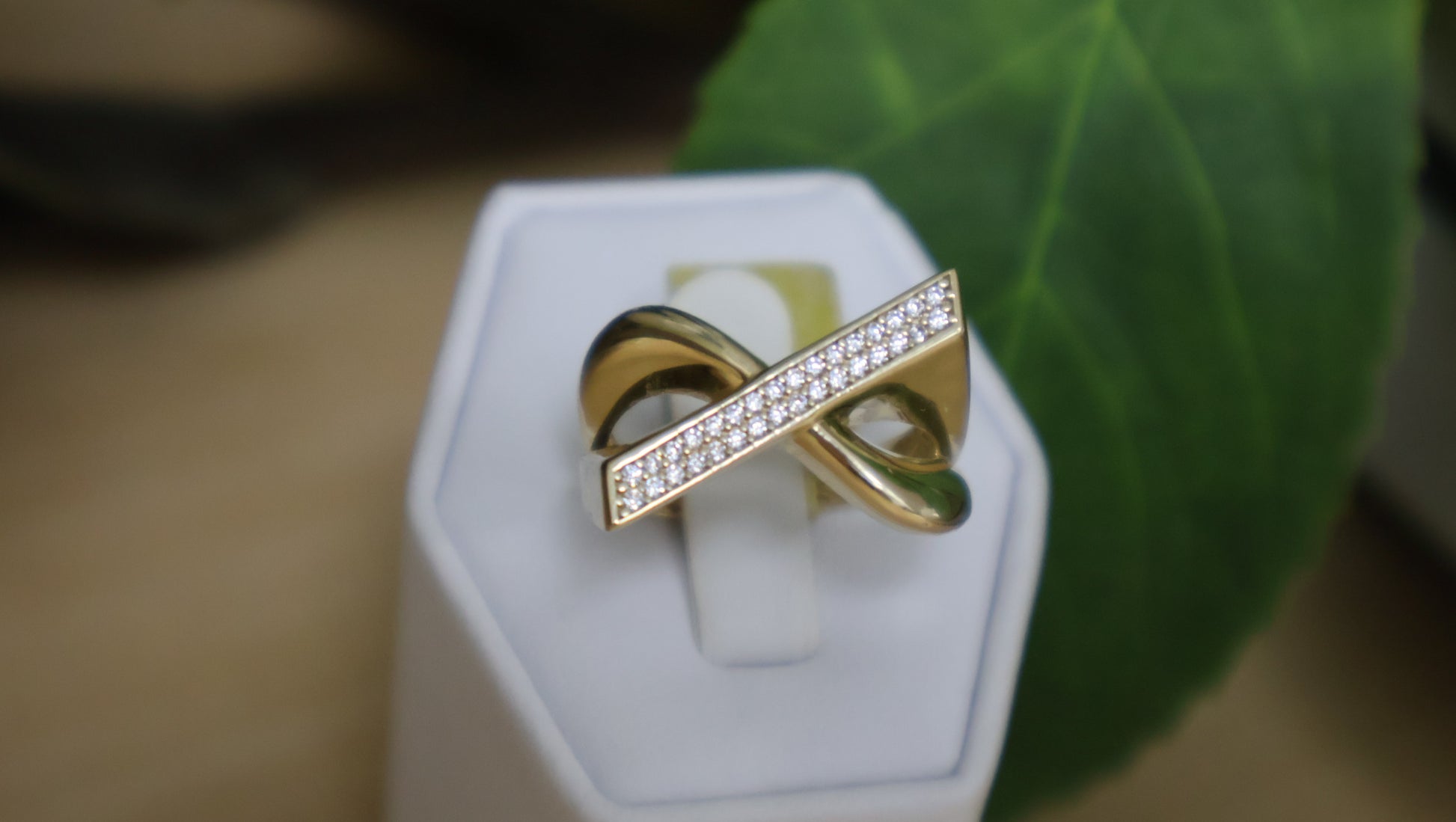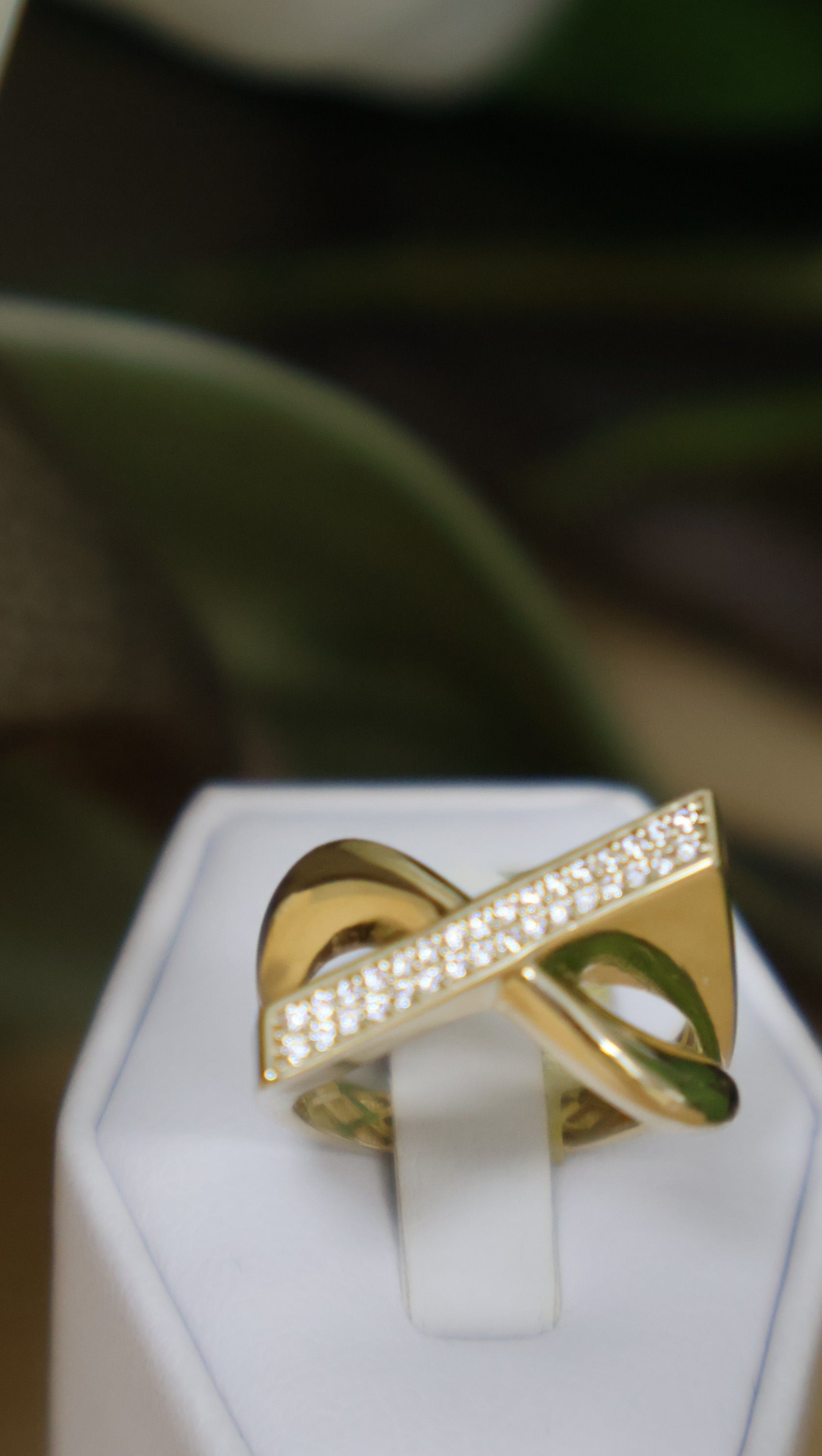 Anillo de Mujer Cruzado con sirconia blanca de oro 10k