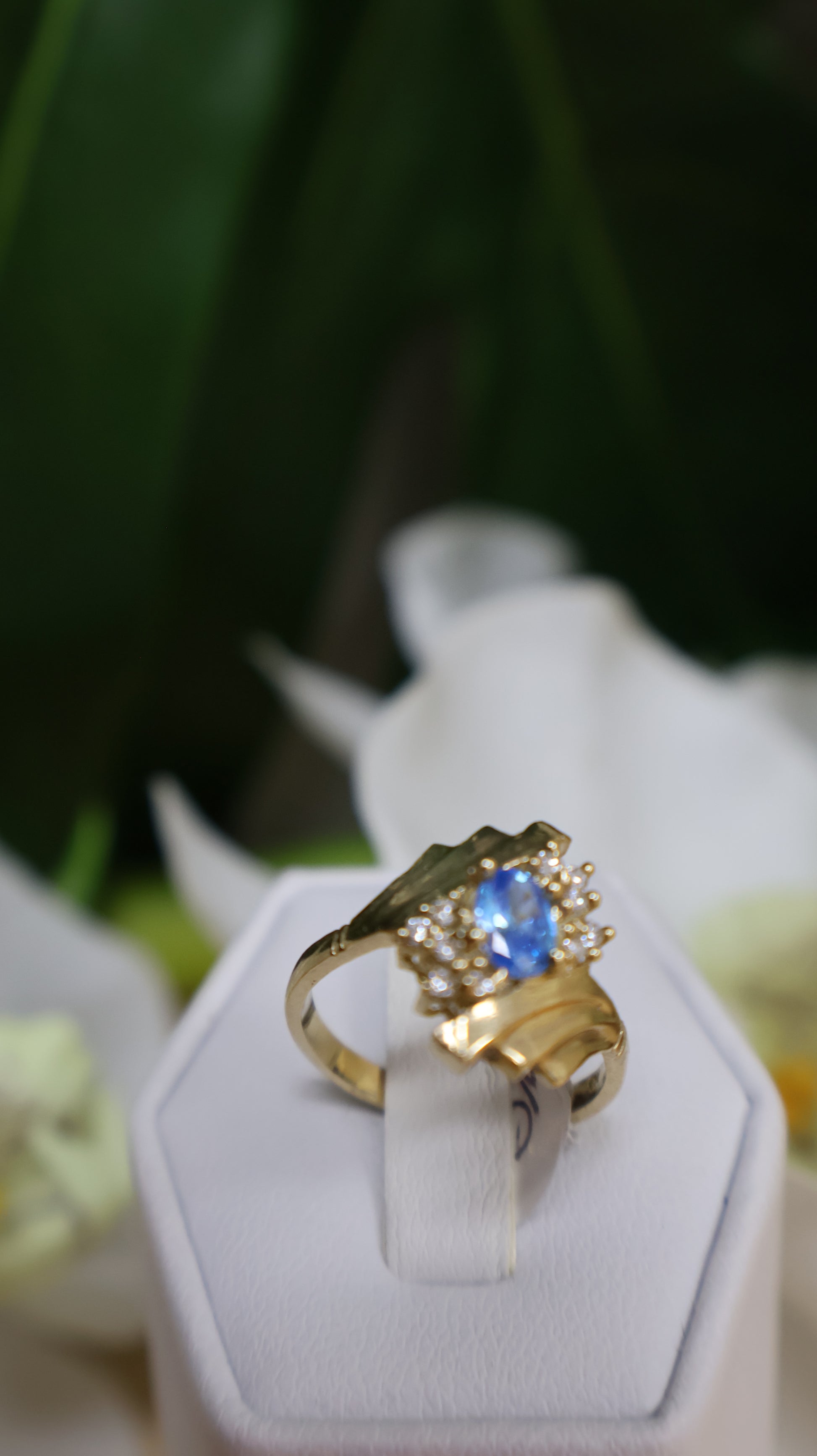 Este anillo de mujer en oro 10k combina una piedra azul central con detalles en circonia blanca, creando un contraste elegante y sofisticado. Su diseño delicado y acabado refinado hacen de esta pieza un accesorio exclusivo, ideal para quienes buscan un toque de distinción y luminosidad que realce cualquier estilo con sutileza y clase.