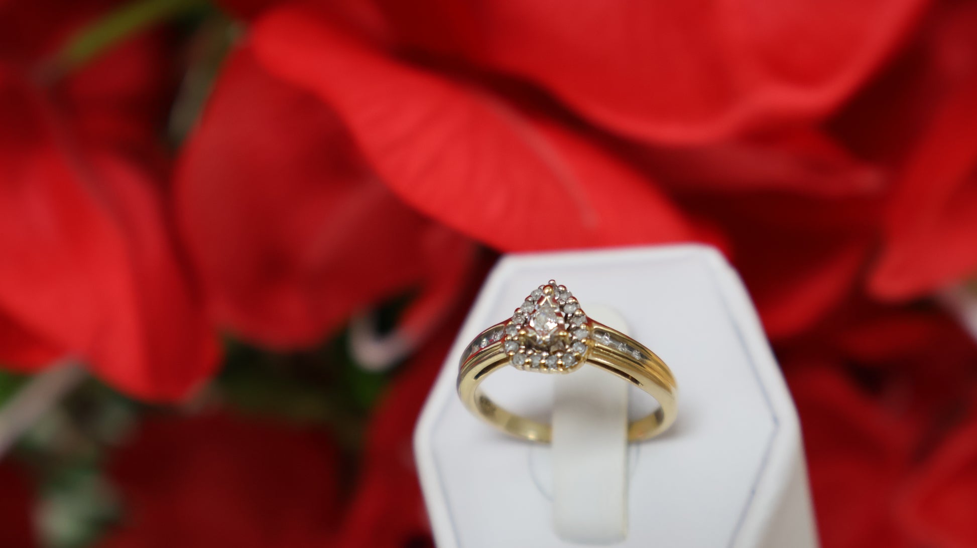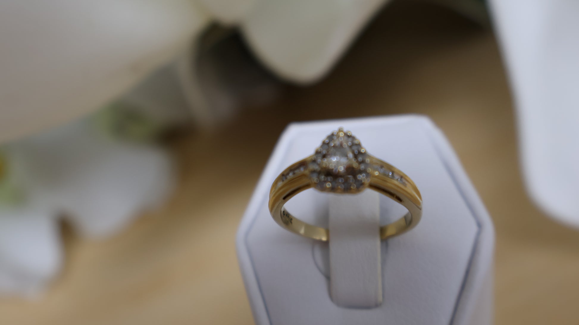 anillo de mujer 10k con piedras en blancas