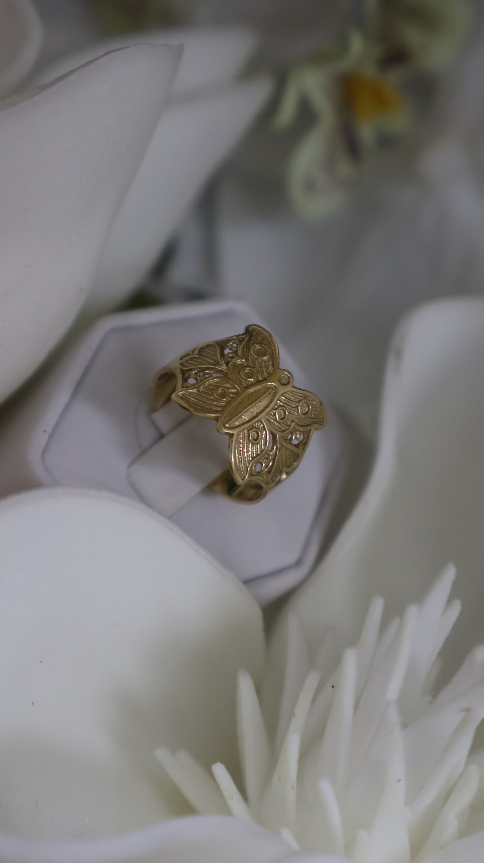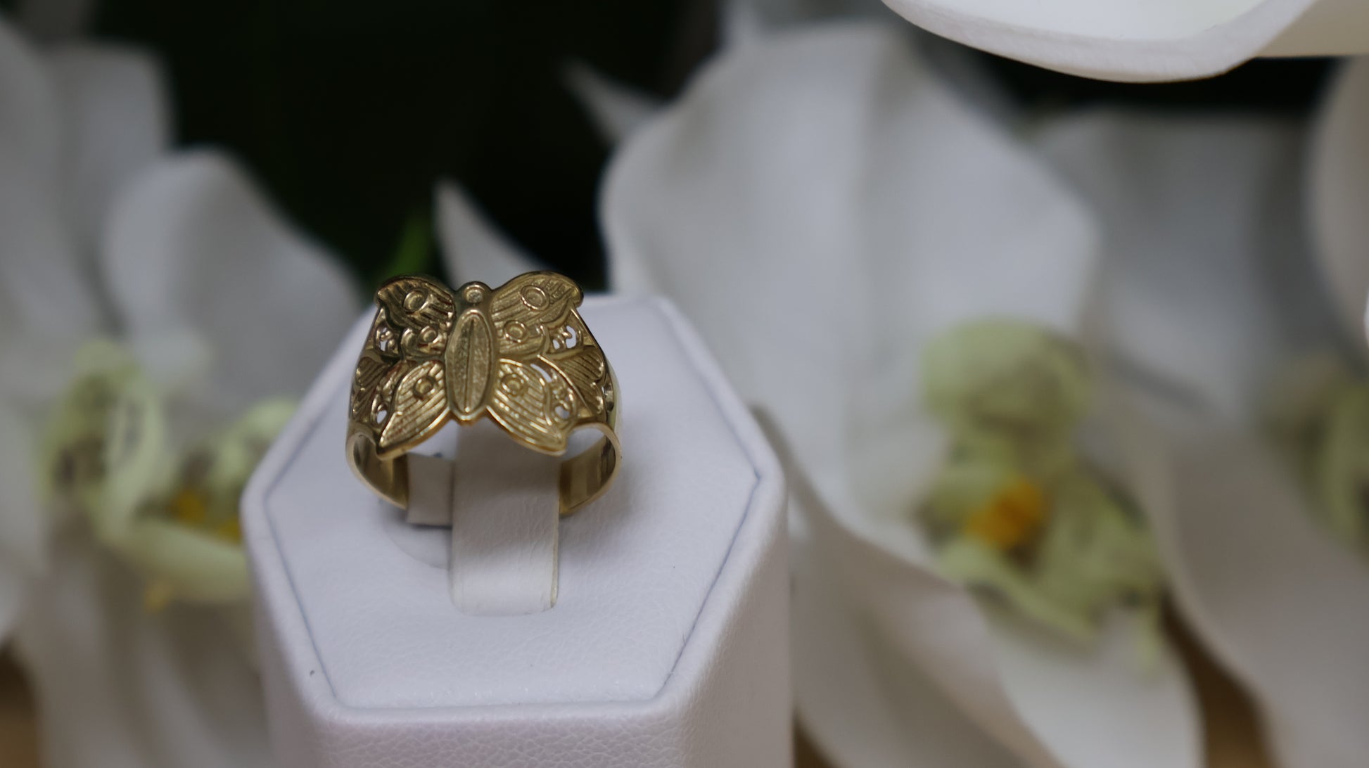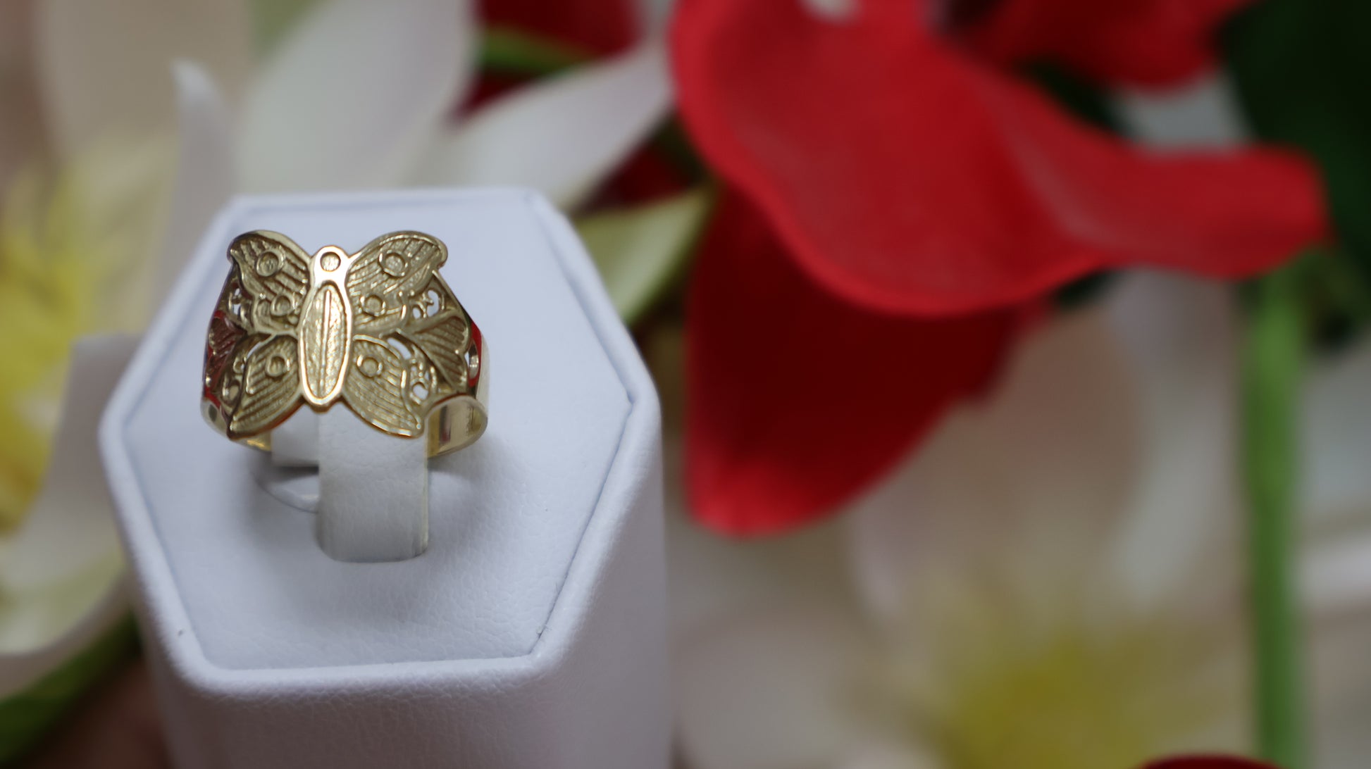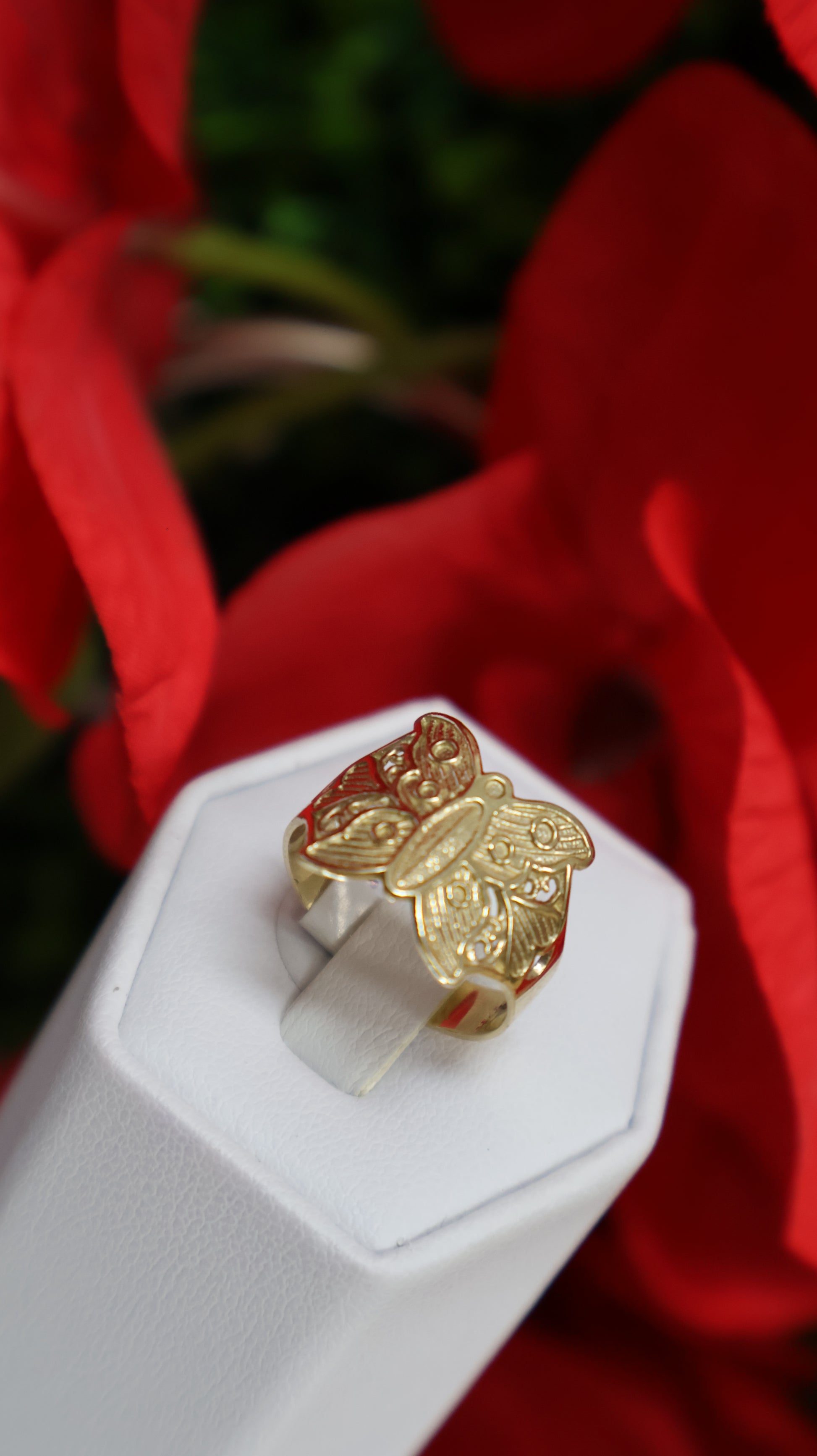 Este anillo de mujer en oro 10k presenta un diseño delicado de mariposa que evoca elegancia y feminidad. Su acabado refinado y detalles sutiles lo convierten en una pieza sofisticada, perfecta para realzar cualquier atuendo con un toque de distinción y gracia. Ideal para quienes buscan un accesorio exclusivo y lleno de encanto.