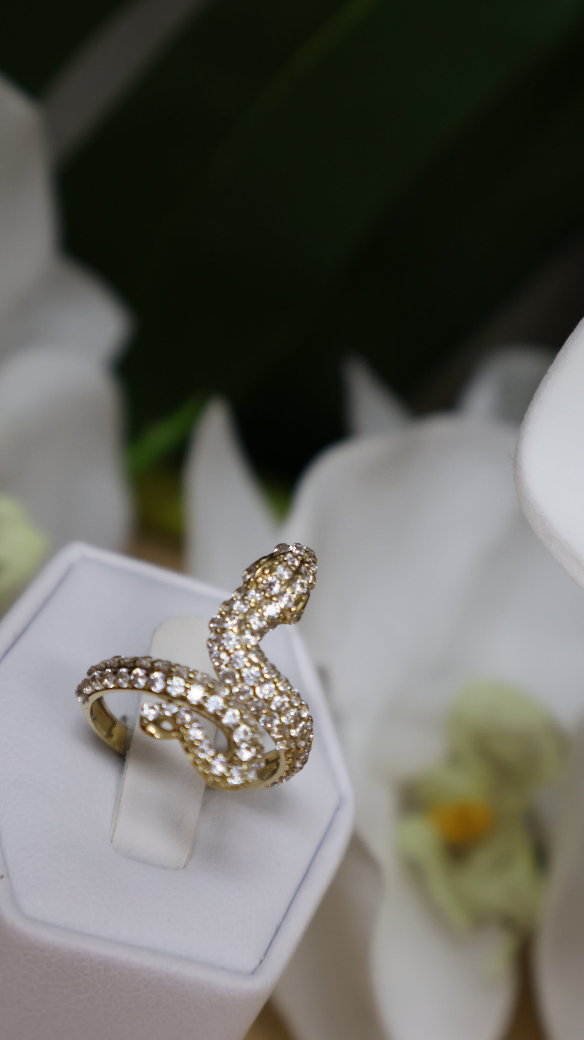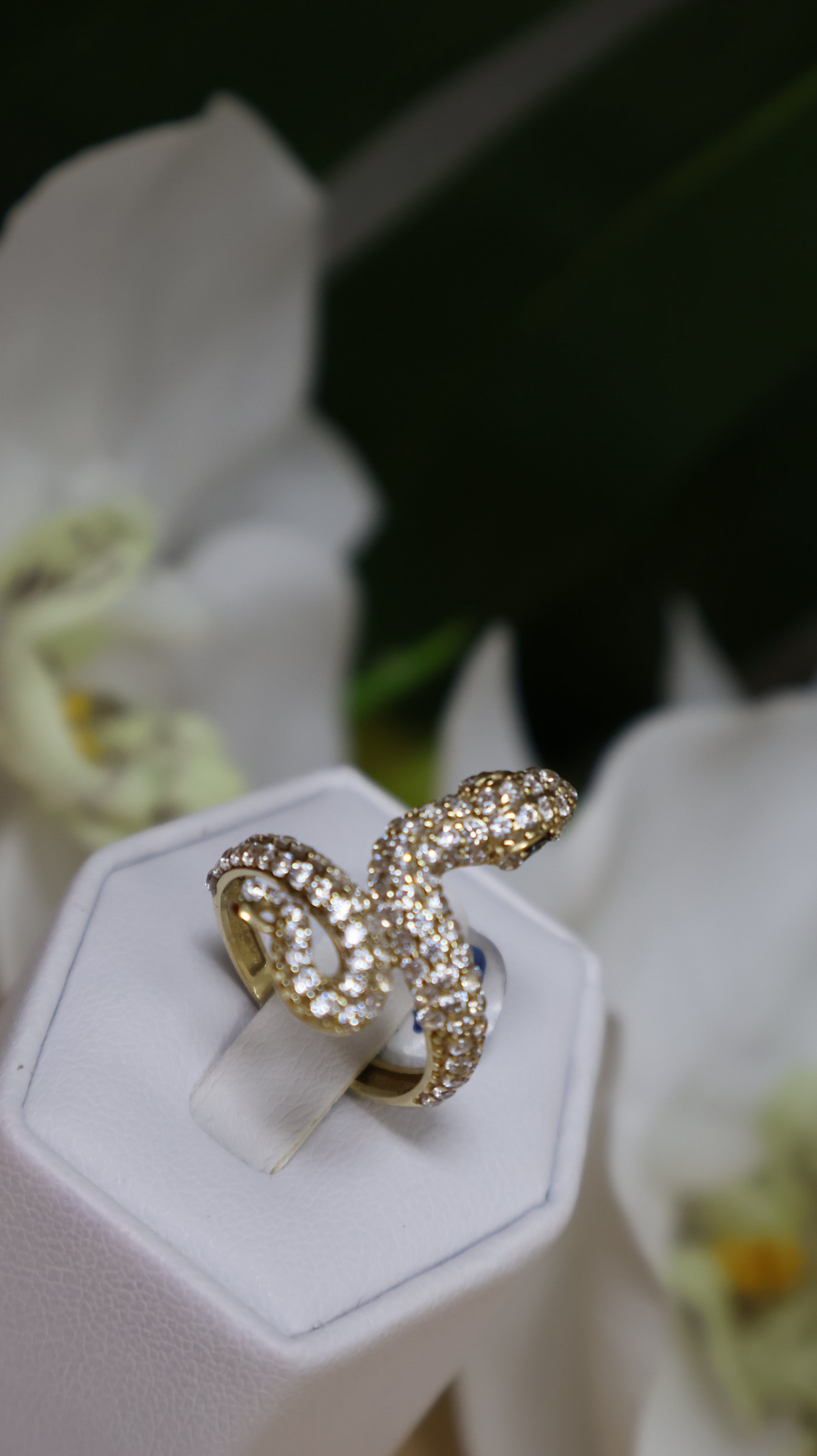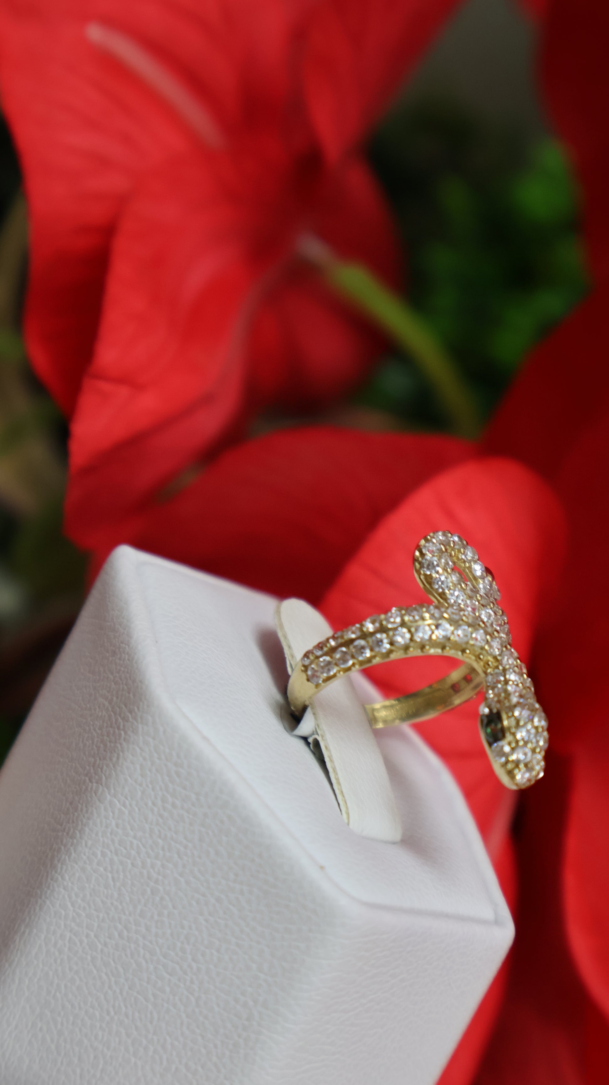 Este anillo de mujer en oro 10k presenta un diseño inspirado en una serpiente con detalles en ciconia blanca, que aporta un aire sofisticado y moderno. Su acabado delicado y elegante lo convierte en una pieza única, perfecta para quienes buscan un accesorio distintivo que realce su estilo con sutileza y clase. Ideal para ocasiones especiales o para añadir un toque exclusivo a tu look diario.