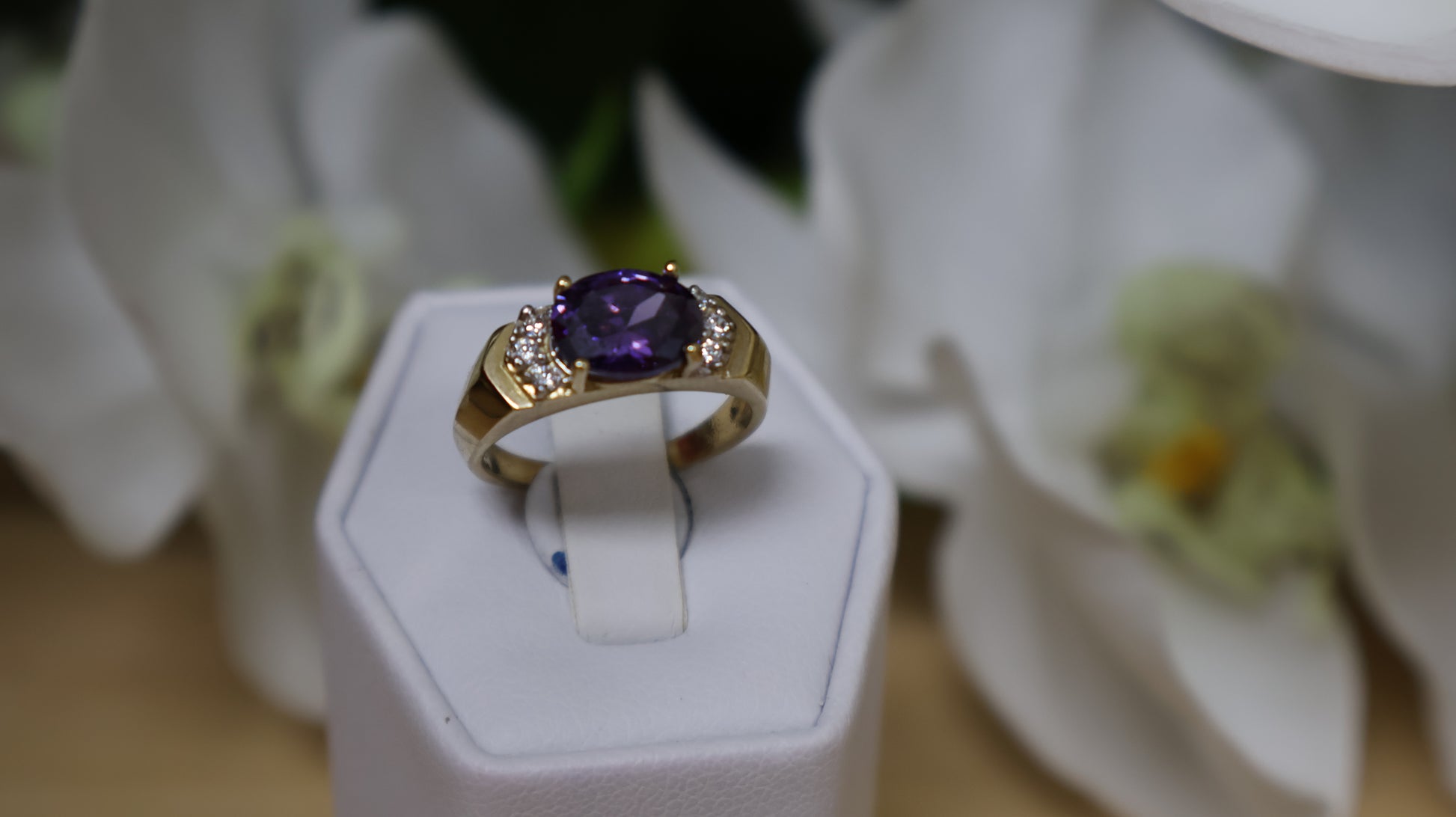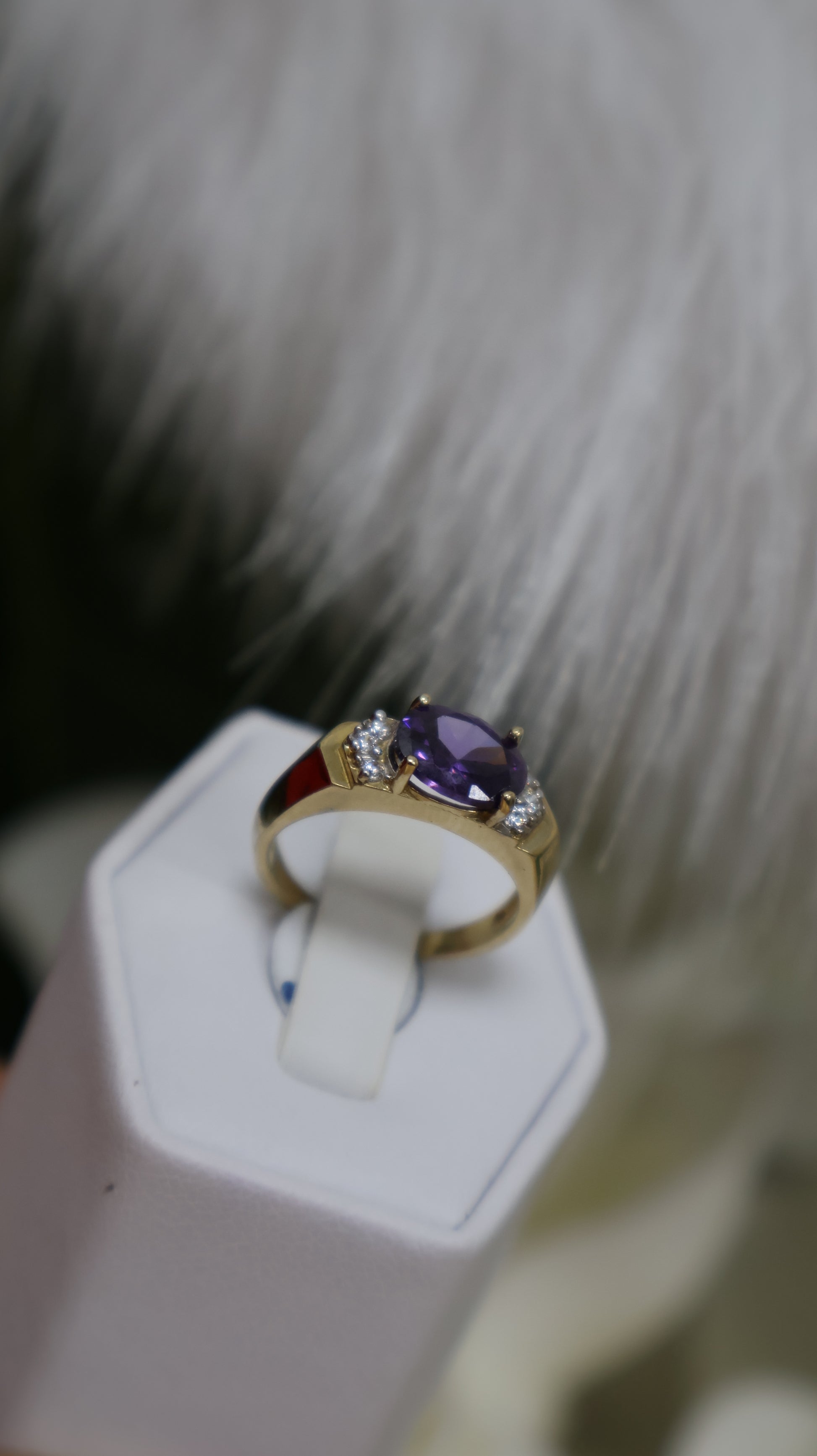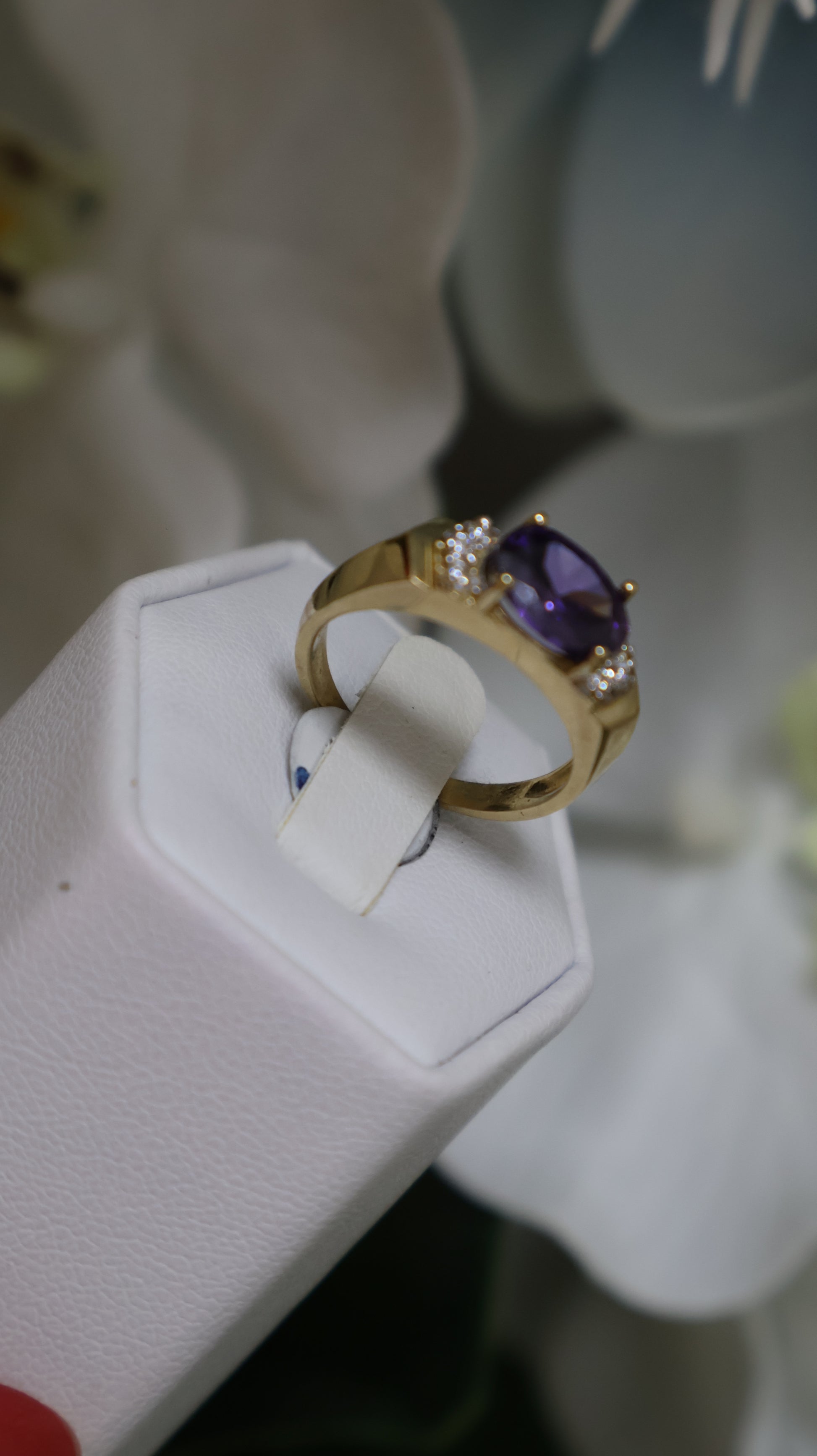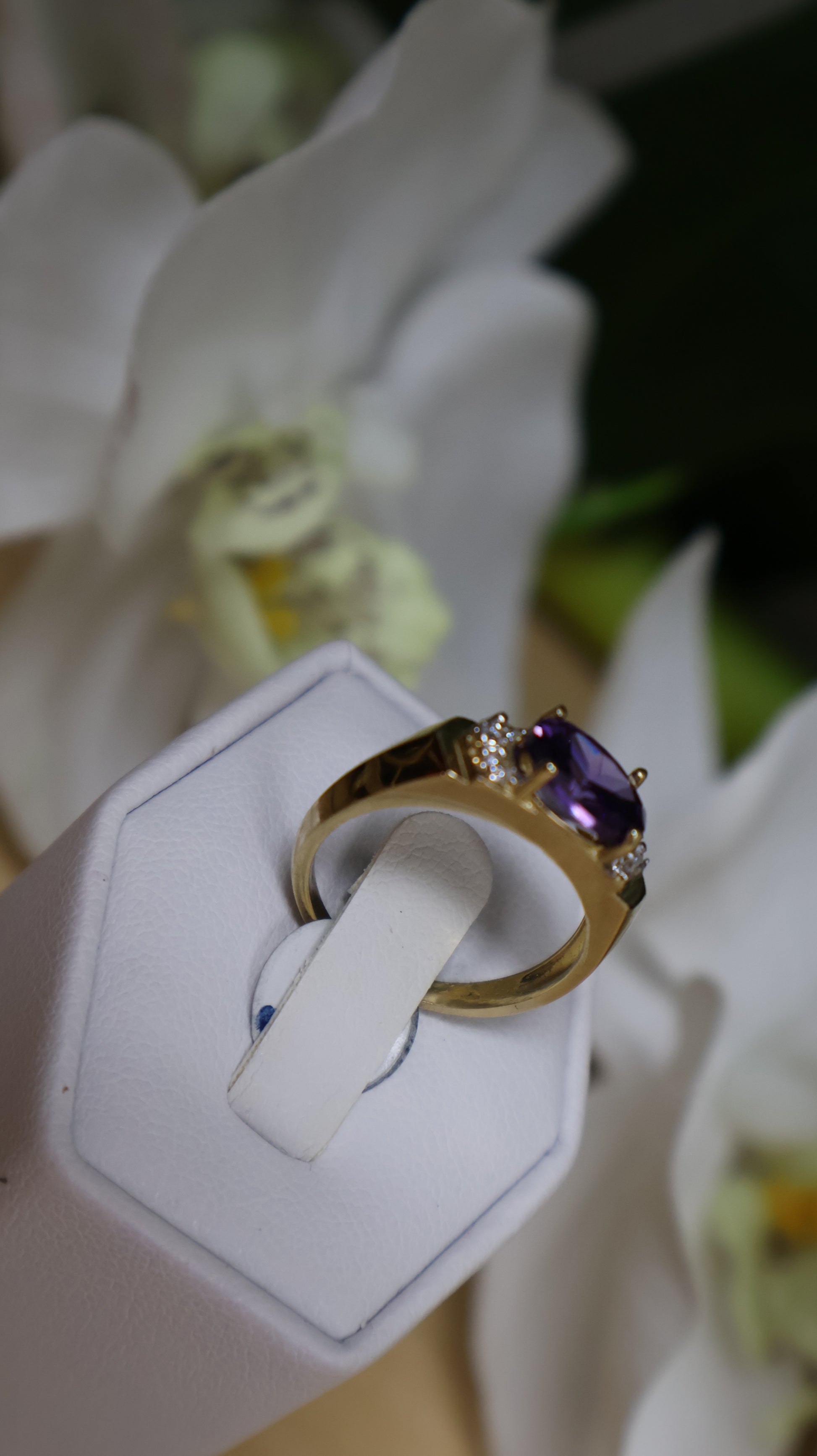Este anillo de mujer en oro 14k combina una piedra morada con una brillante ciconia blanca, creando un contraste elegante y sofisticado. Su diseño delicado resalta la belleza de cada detalle, ofreciendo una pieza exclusiva que aporta un toque de color y luminosidad refinada. Ideal para quienes buscan un accesorio distinguido que realce cualquier estilo con elegancia atemporal.