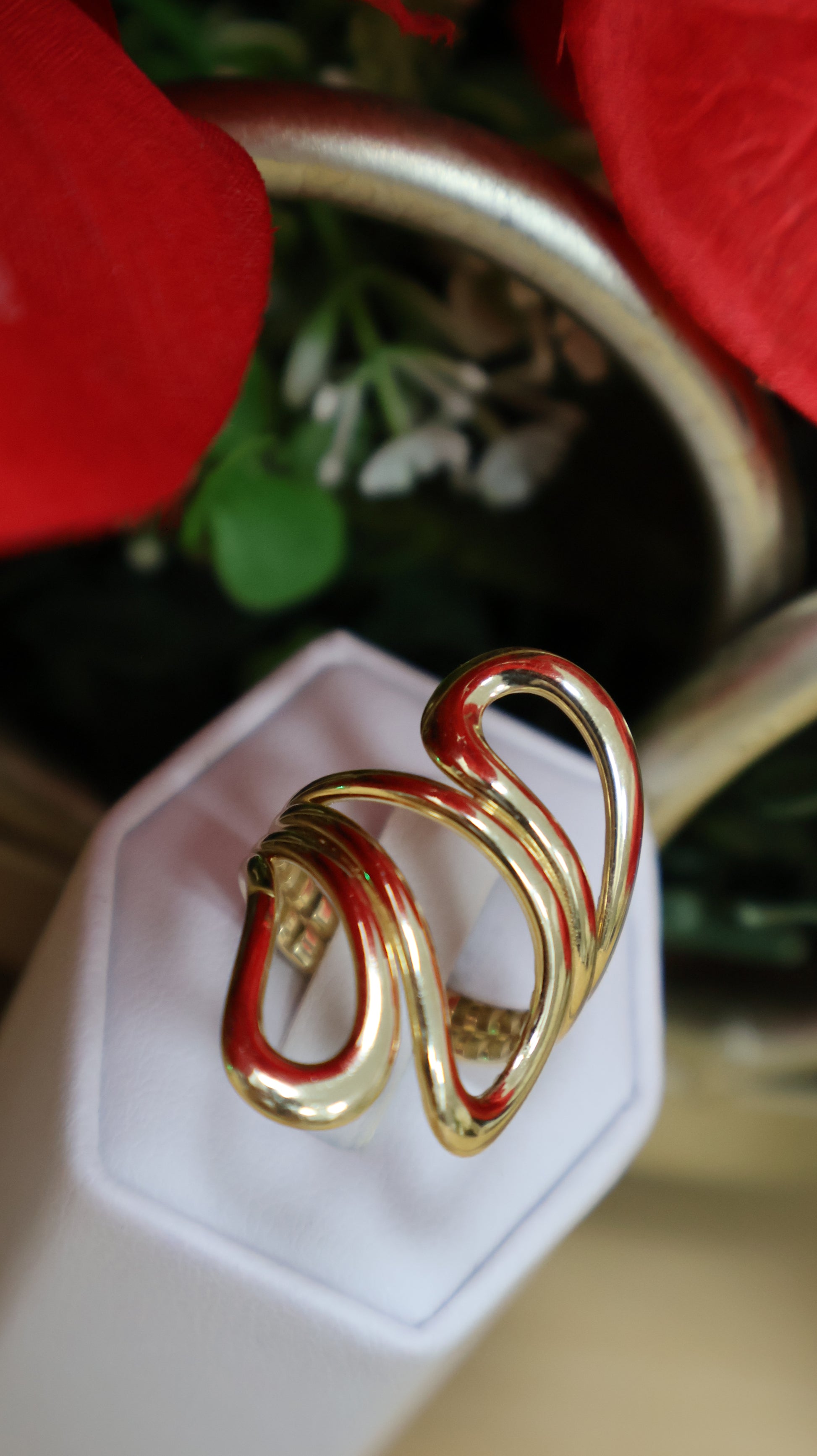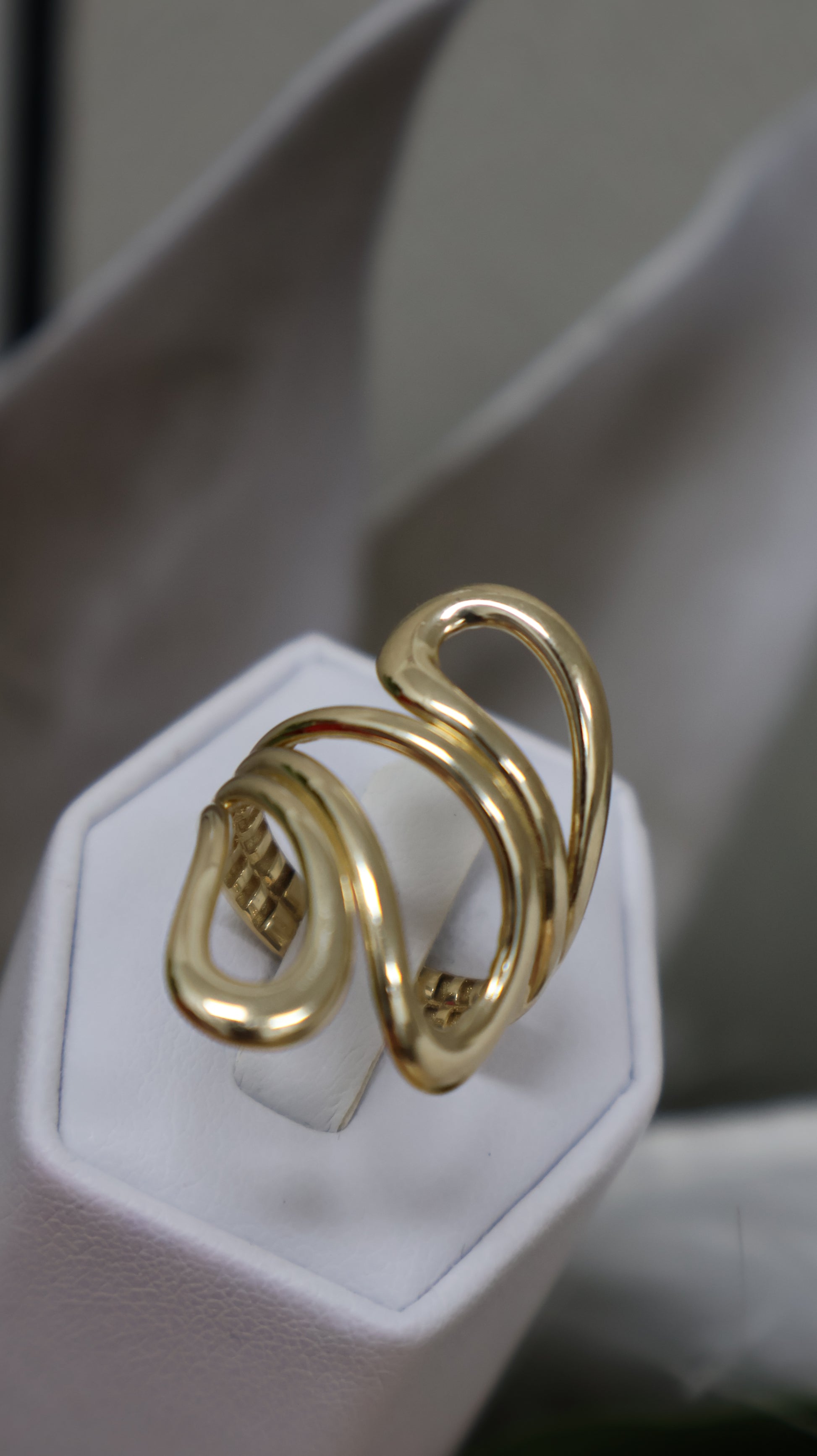 anillo de mujer 14k con tres terminado en oja